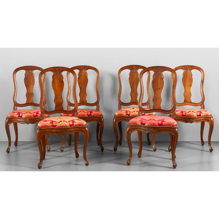 Precedente Lotto 0683 Successivo Aste Boetto - Via Mura dello Zerbino 10R, 16122 Genova ASTA DI ANTIQUARIATO E ARTE ORIENTALE ASTA DI ANTIQUARIATO E ARTE ORIENTALE mercoledì 26 febbraio 2025 ore 10:00 (UTC +01:00) MOBILE Sei sedie in stile Luigi XV genovese in noce