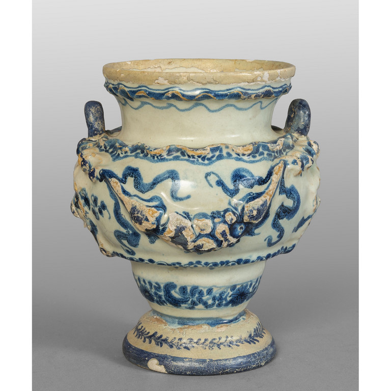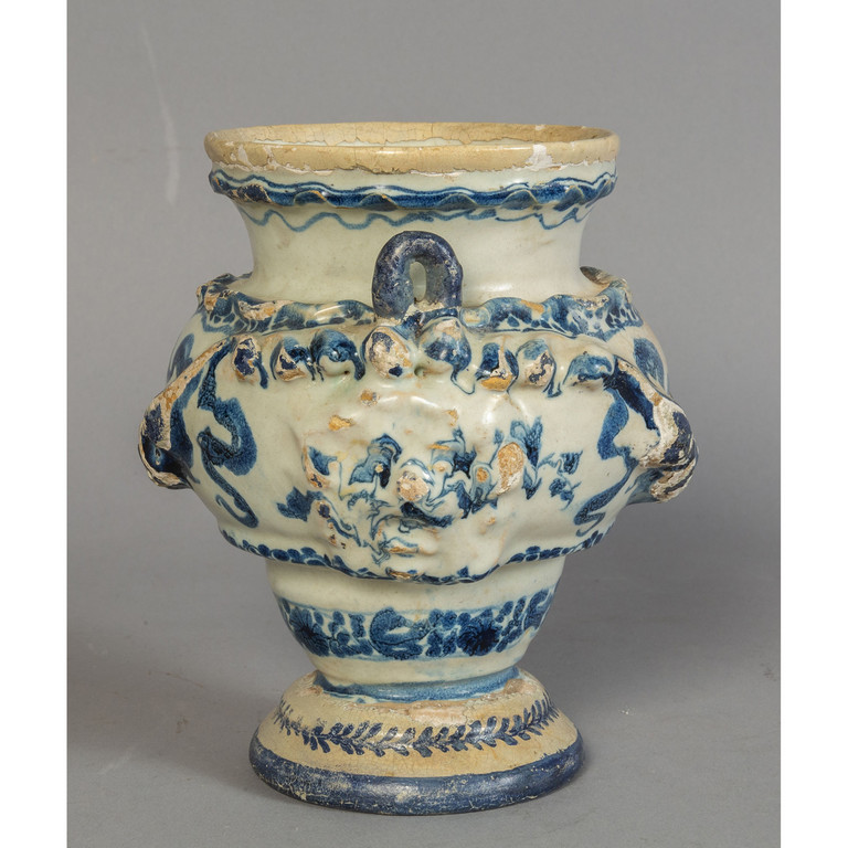 Vasetto in ceramica a decorazione bianca e blu decorato con serti Savona sec.XVIII