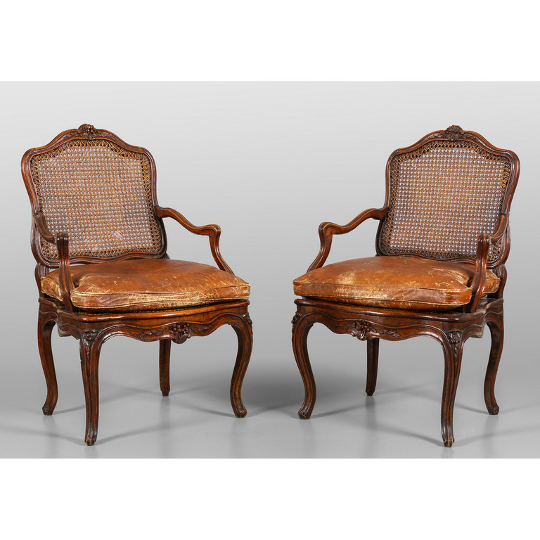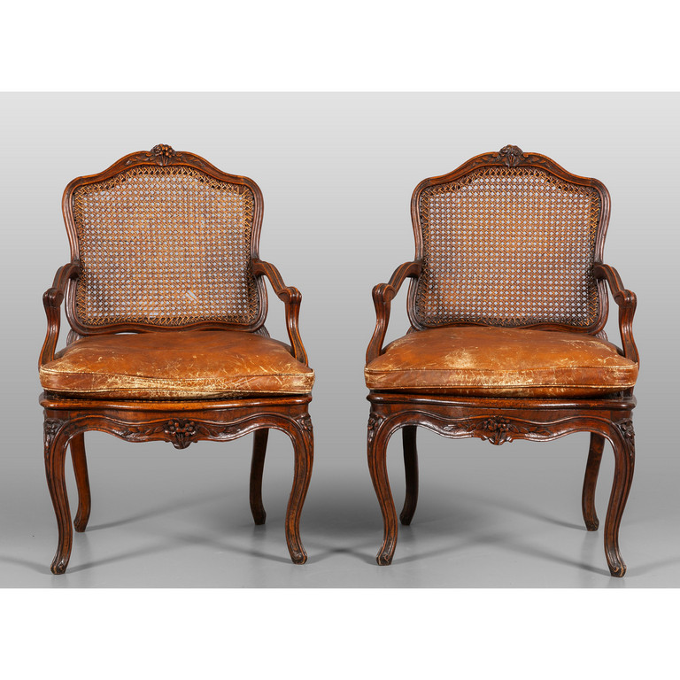 Coppia di poltroncine in stile Luigi XV con cuscino in pelle Francia sec.XIX