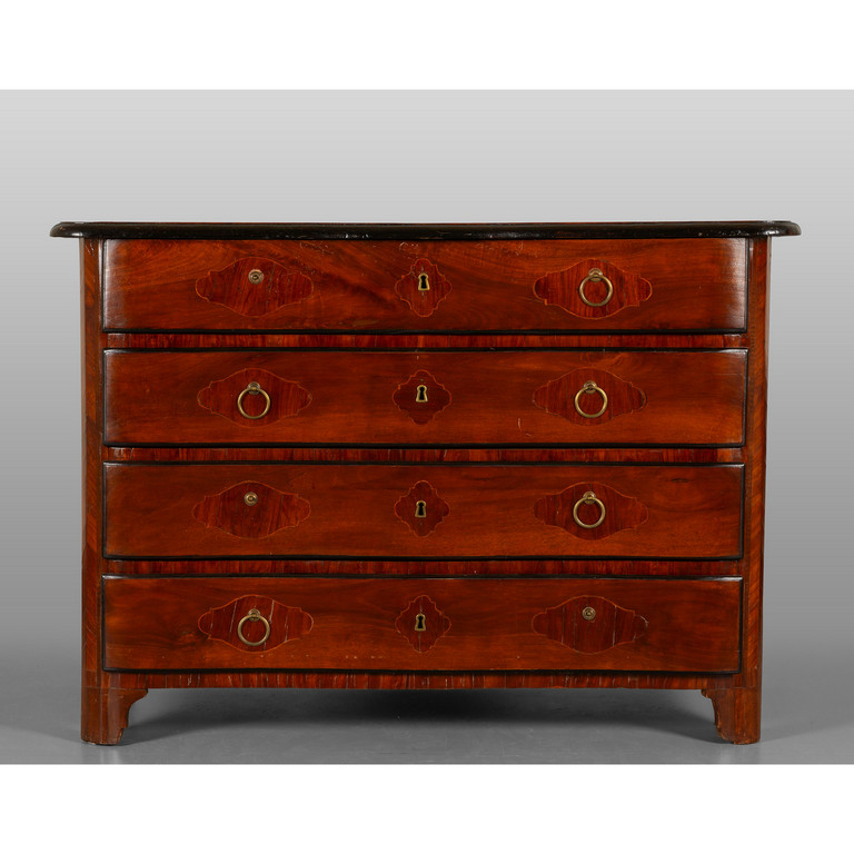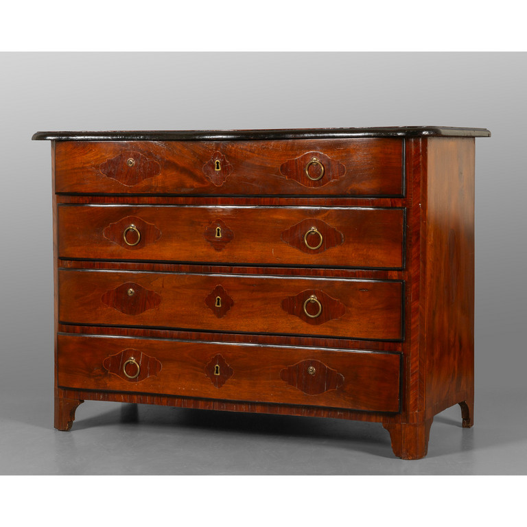 Comò Luigi XIV in massello di noce a quattro cassetti di forma mossa Piemonte sec.XVIII