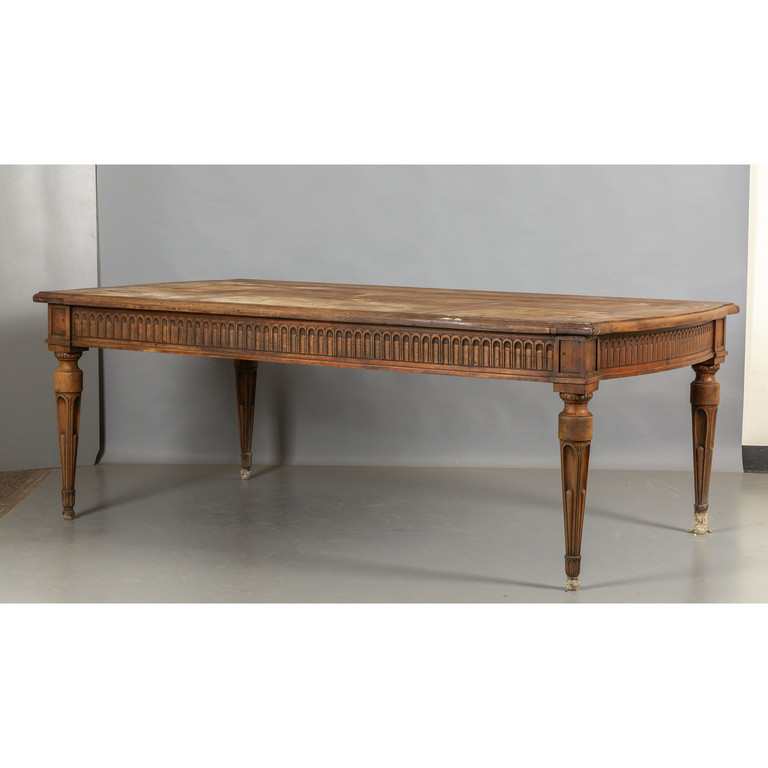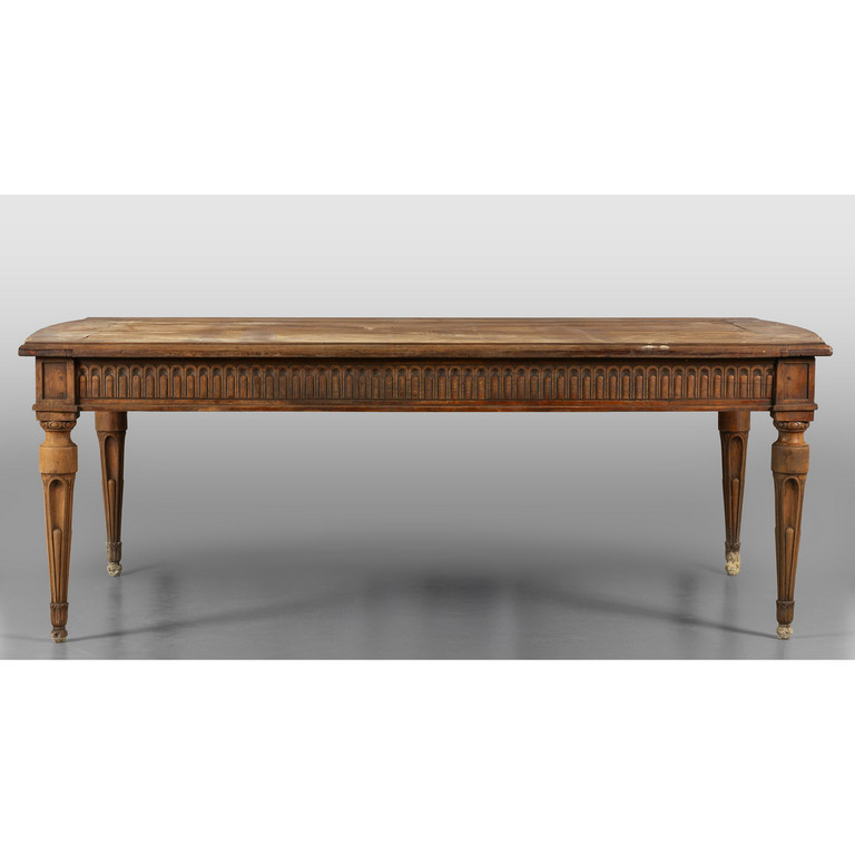 Tavolo Luigi XVI in ciliegio gambe scanalate fascia intagliata sec.XIX
