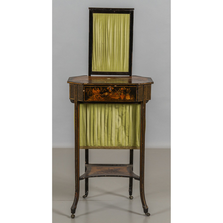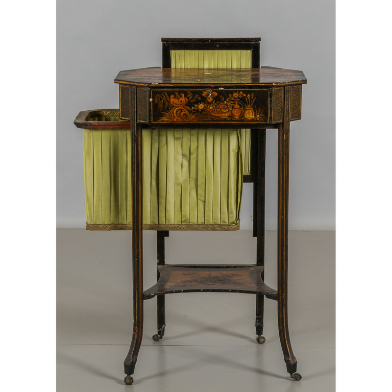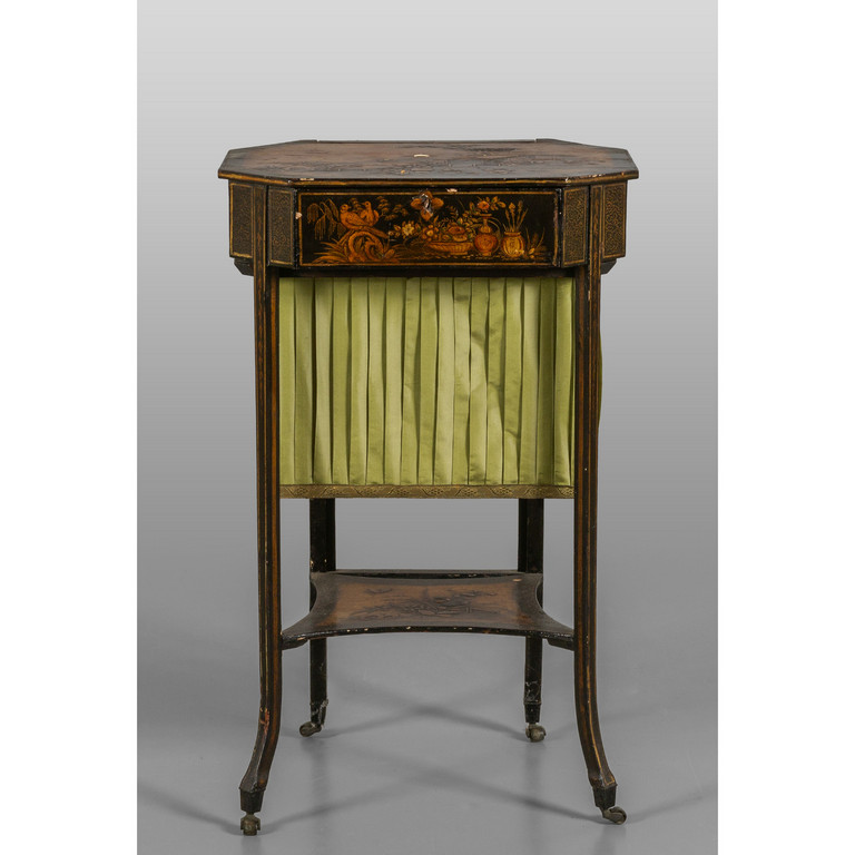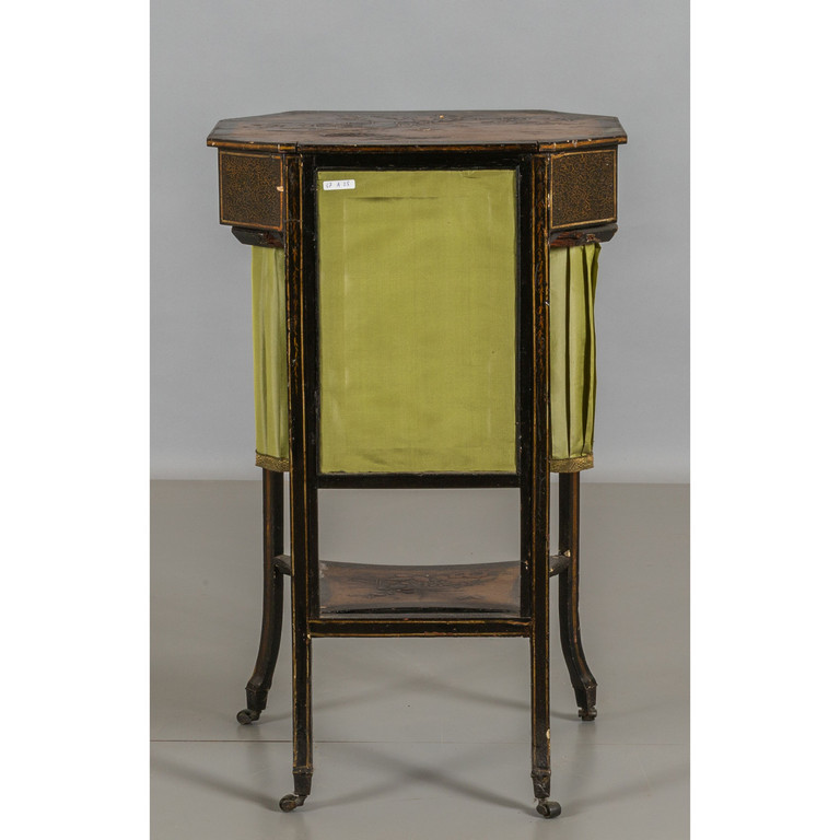 Tavolino da lavoro di forma ottagonale in legno laccato a cineserie Inghilterra metà sec.XIX