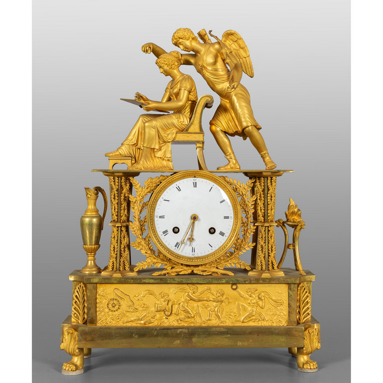 Orologio Impero in bronzo dorato raffigurante 'L'ispirazione' inizi sec.XIX