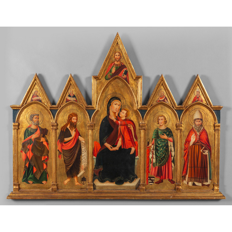 Precedente Lotto 0835 Successivo Aste Boetto - Via Mura dello Zerbino 10R, 16122 Genova ASTA DI ANTIQUARIATO E ARTE ORIENTALE ASTA DI ANTIQUARIATO E ARTE ORIENTALE mercoledì 26 febbraio 2025 ore 10:00 (UTC +01:00) DIPINTO Polittico a fondo oro sec.XIXcm. 142x113
