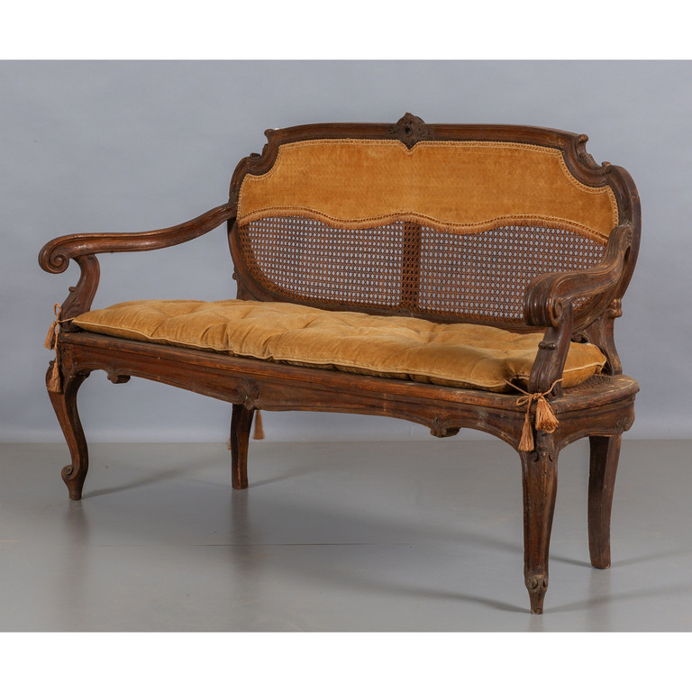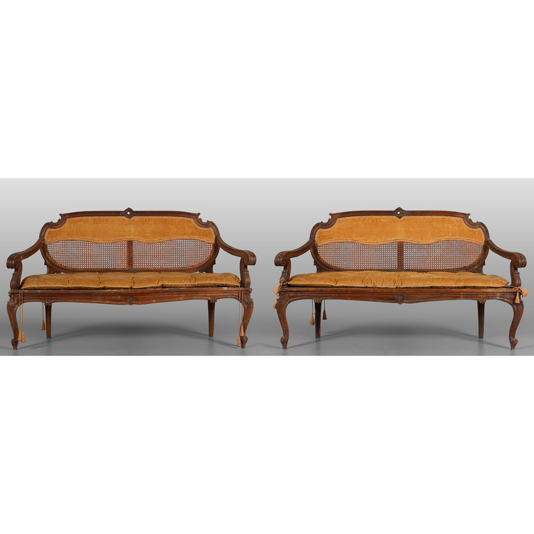 Coppia di divani in stile Luigi XV in noce sec.XIX