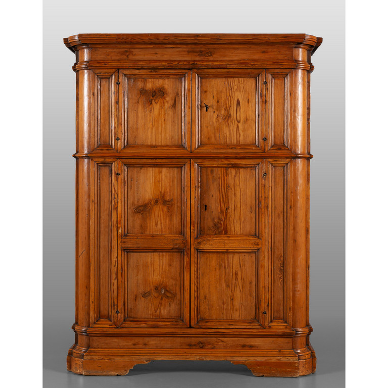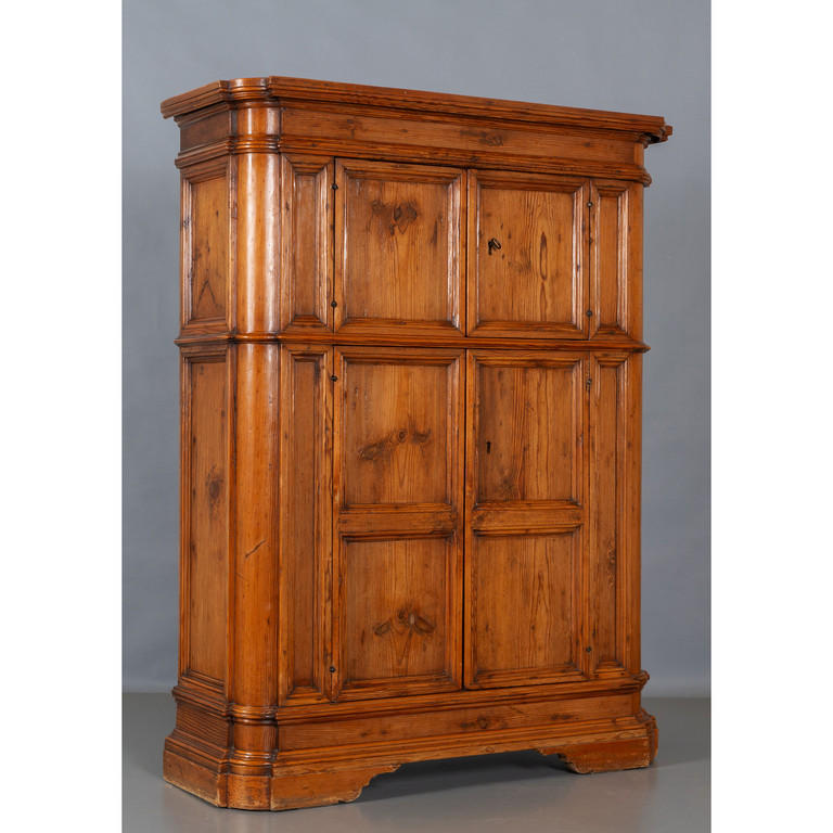 Credenza Luigi XIV a quattro sportelli in abete montanti scantonati inizi sec.XVIII