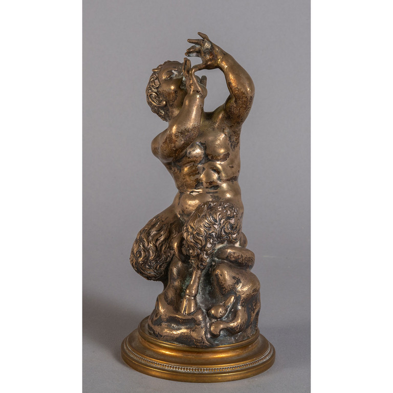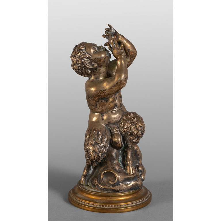 Satiro musicante scultura in argento poggiante su base in bronzo