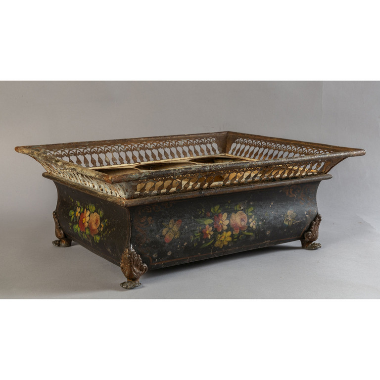Precedente Lotto 0908 Successivo Aste Boetto - Via Mura dello Zerbino 10R, 16122 Genova ASTA DI ANTIQUARIATO E ARTE ORIENTALE ASTA DI ANTIQUARIATO E ARTE ORIENTALE mercoledì 26 febbraio 2025 ore 10:00 (UTC +01:00) OGGETTISTICA Portabottiglie in latta dipinta sec.XIXcm.41x32xh.15