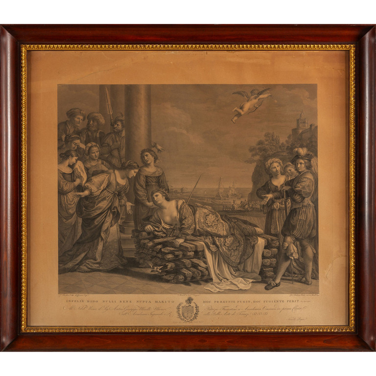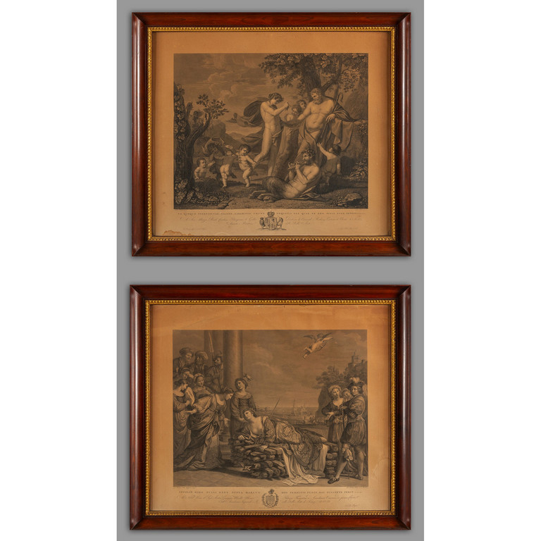 Coppia di stampe raffiguranti dipinti di Nicolò Poussin e del Guercino cornici in legno sec.XIX
