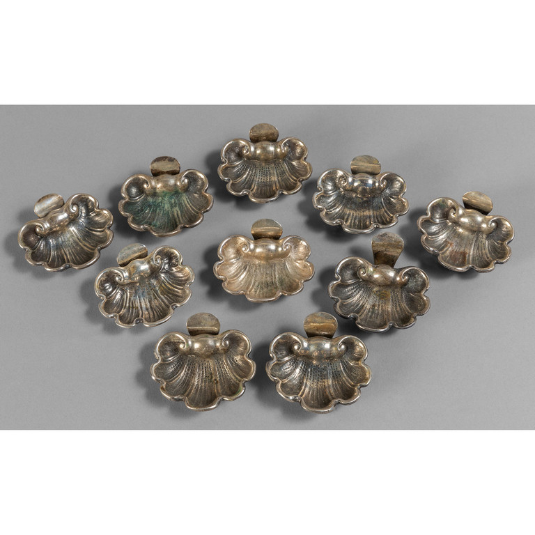 Dieci piccoli segnaposto in argento a forma di conchiglia