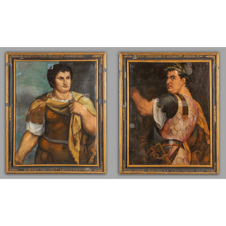 Scuola centro-italiana sec.XIX 'Ritratti di imperatori romani' coppia di olii