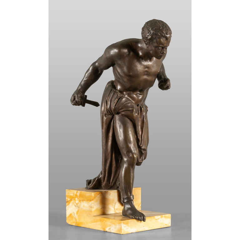 Spartaco scultura in bronzo poggiante su base in marmo giallo f.ta e d.ta 1931