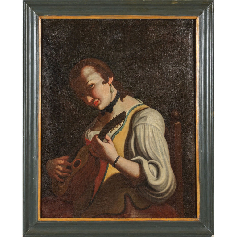 Scuola lombarda sec.XVIII 'Ragazza con mandolino' olio