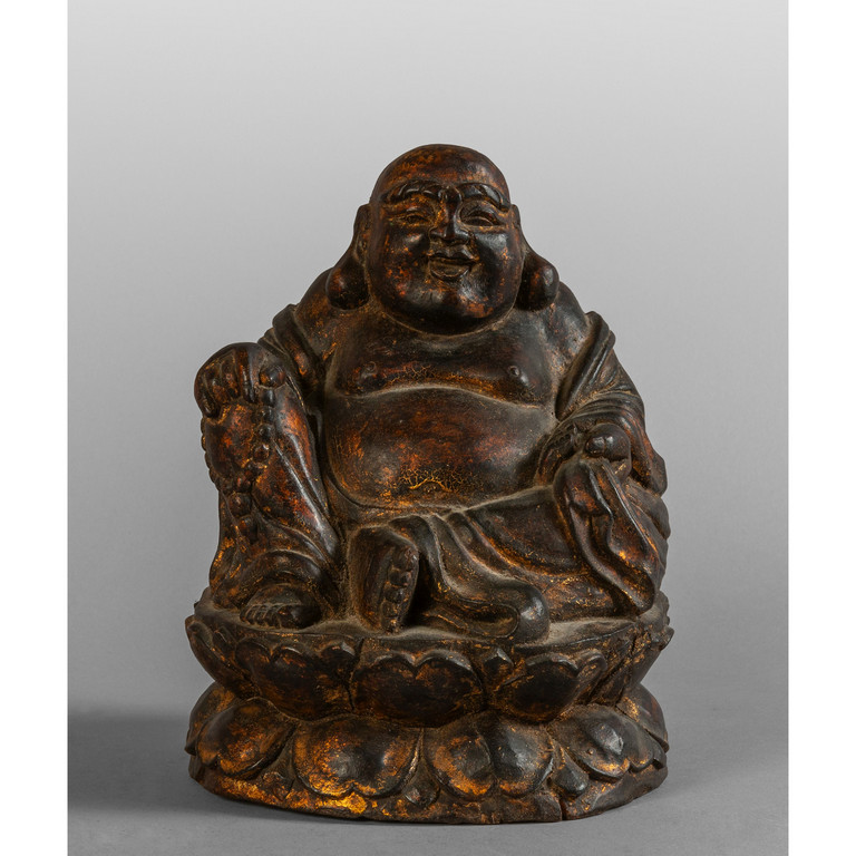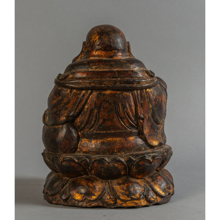 Buddha scultura in legno intagliato e dorato Cina fine sec.XIX