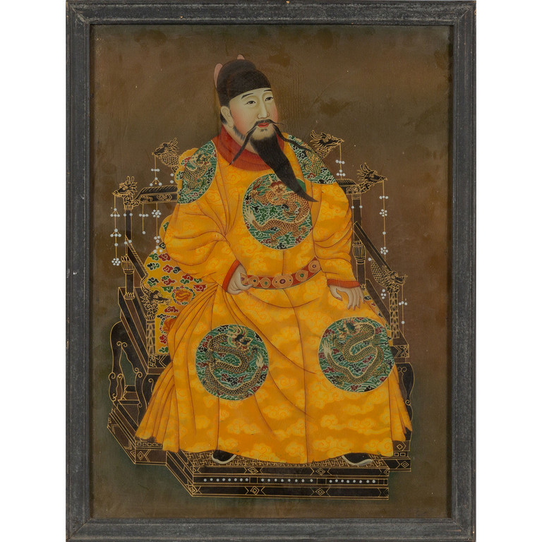 'Ritratto di imperatore' olio su vetro Cina fine sec.XIX