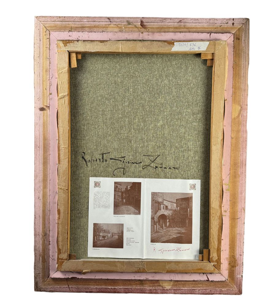 Dipinto olio su tela, periodo XX secolo scuola Italiana, raffigurante Vecchi casale. Dimensioni compreso cornice: 65x85 cm. Dimensioni interno cornice: 50x70 cm. Reca firma in basso a destra da Roberto Cipriano Zuccaro. Opera in buone condizioni.