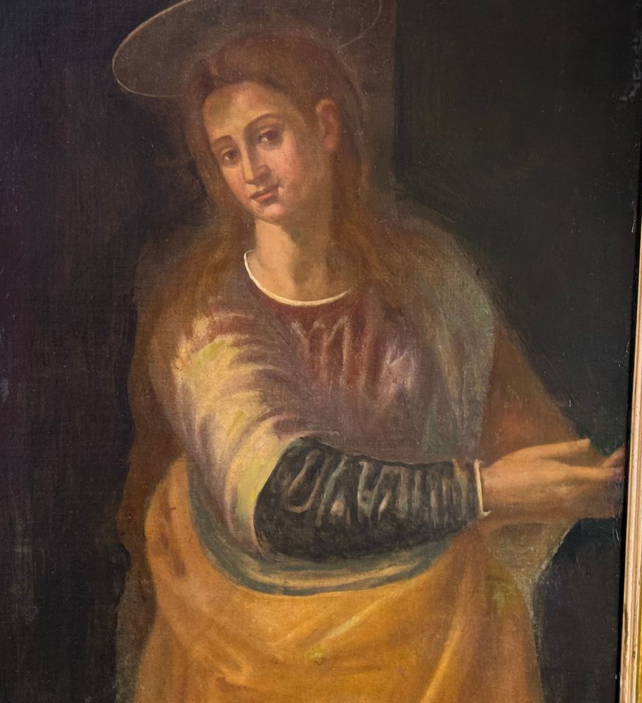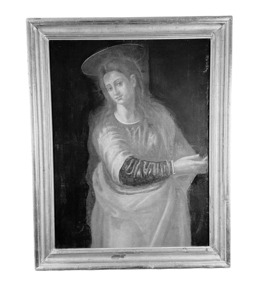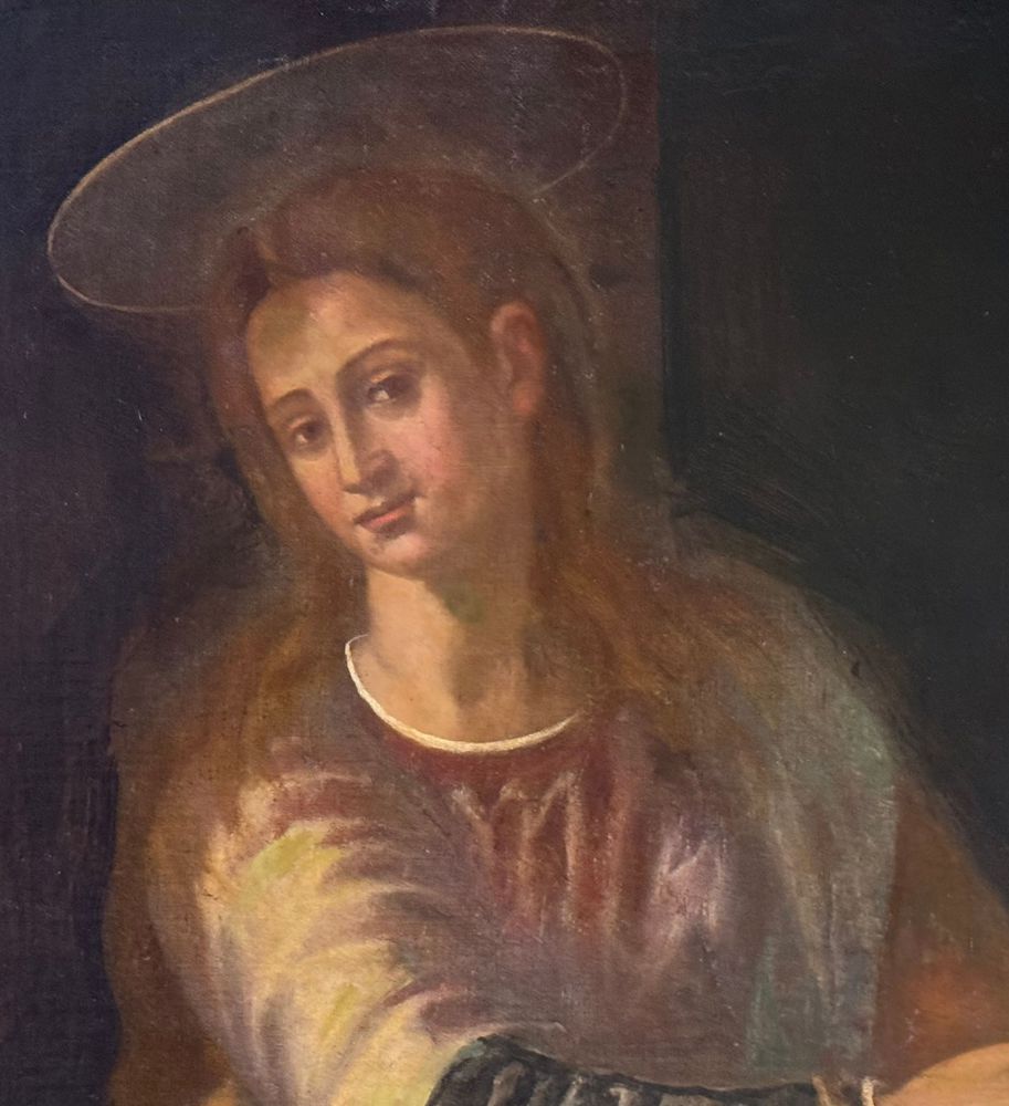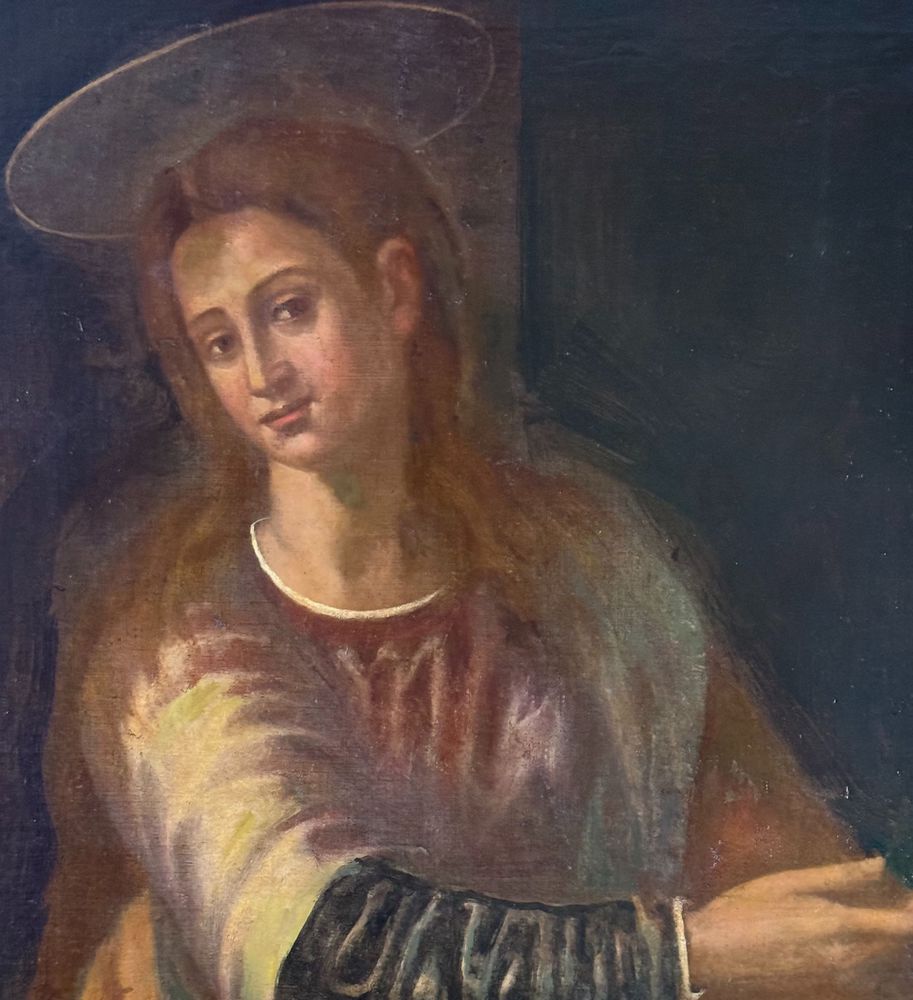 Dipinto olio su tela, periodo XVIII secolo scuola Italiana, raffigurante Vergine. Dimensioni compreso cornice: 80x102 cm. Dimensioni interno cornice: 65x87 cm. Da artista anonimo. Opera pittorica integra da segnalare un antico rintelo e sparsi punti di restauro.
