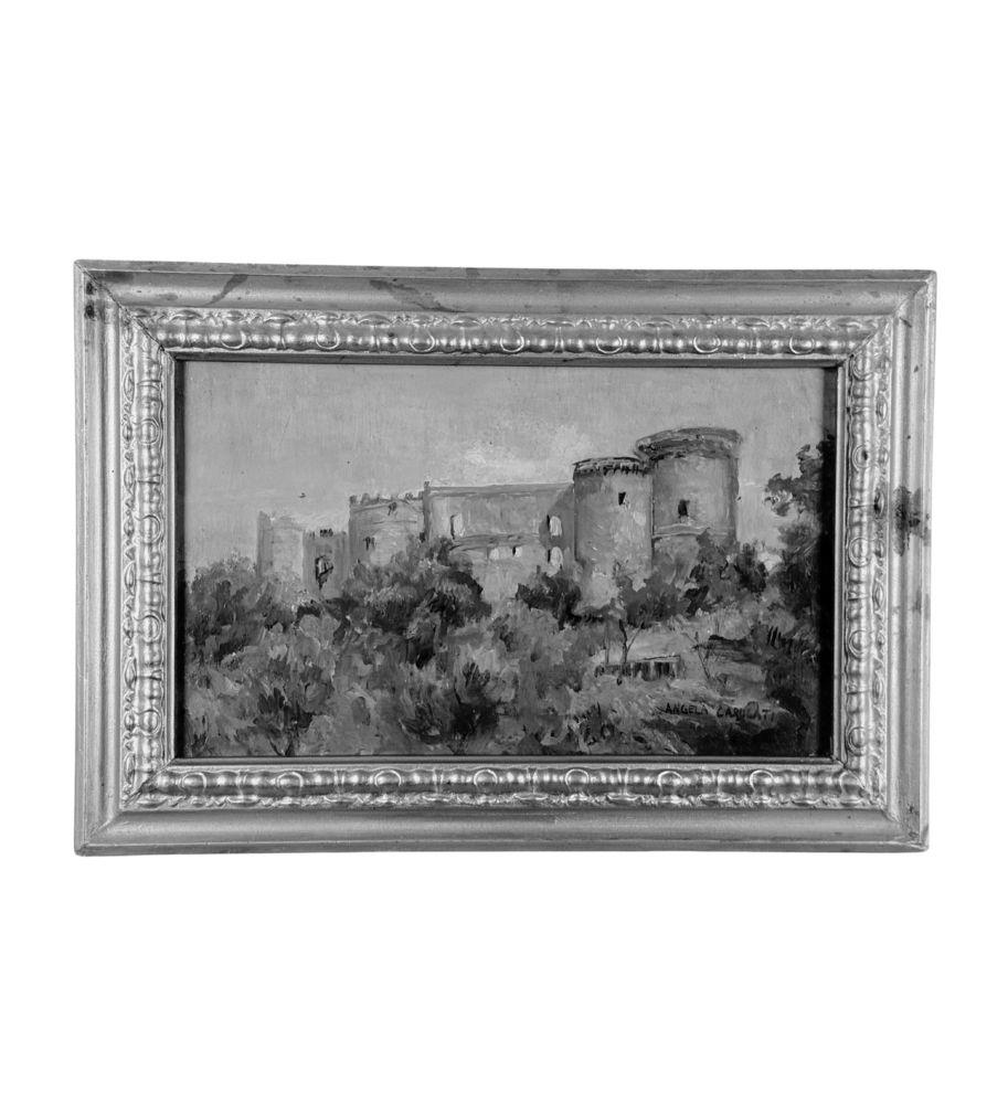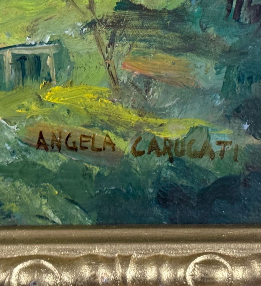 Dipinto olio su tavola, periodo XX secolo scuola Italiana, raffigurante Paesaggio con castello. Dimensioni compreso cornice: 42x28,5 cm. Dimensioni interno cornice: 34x21 cm. Reca firma in basso a destra da Angela Carugati. Opera in buone condizioni.