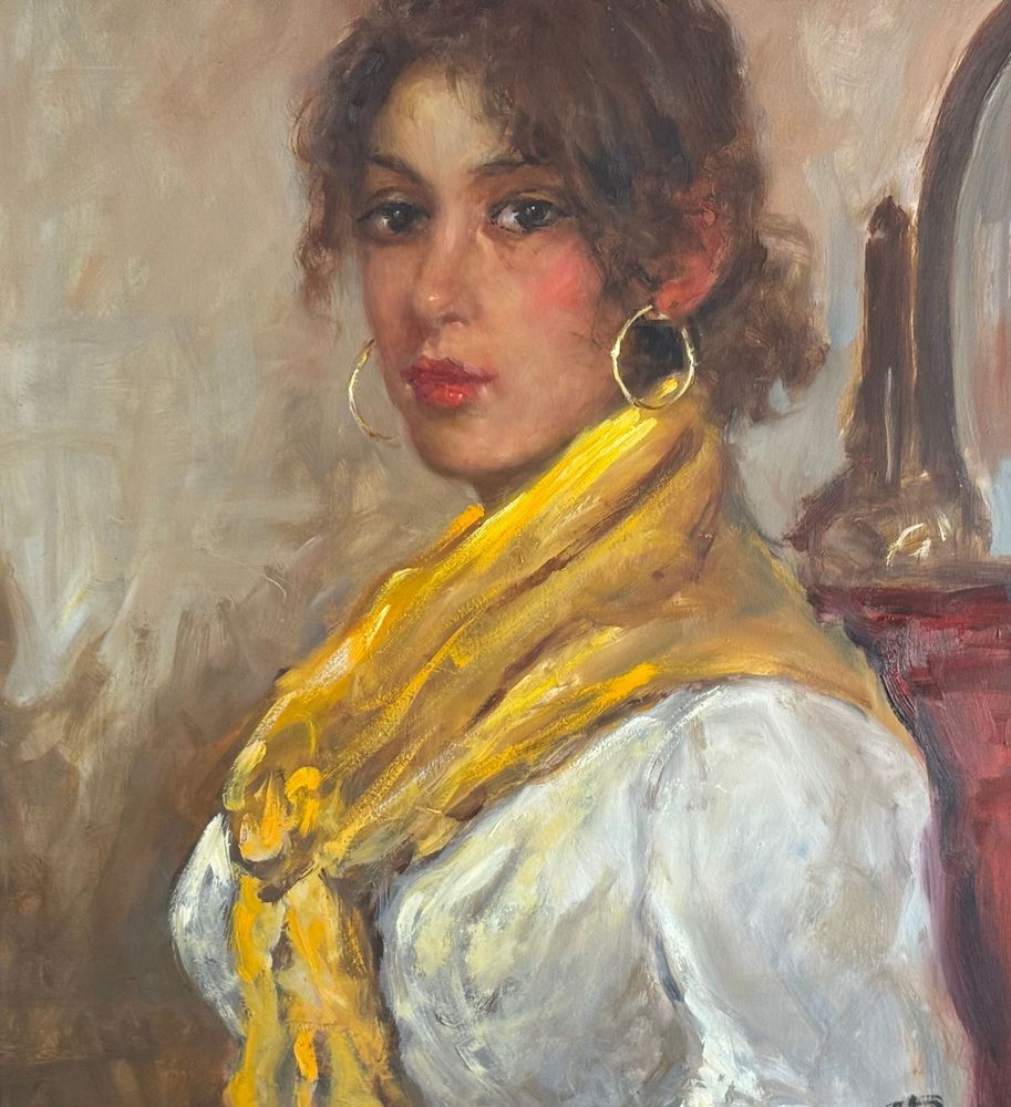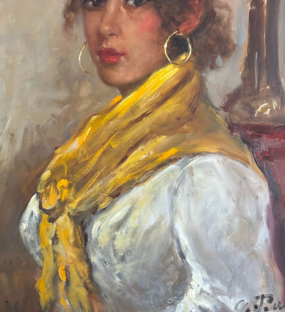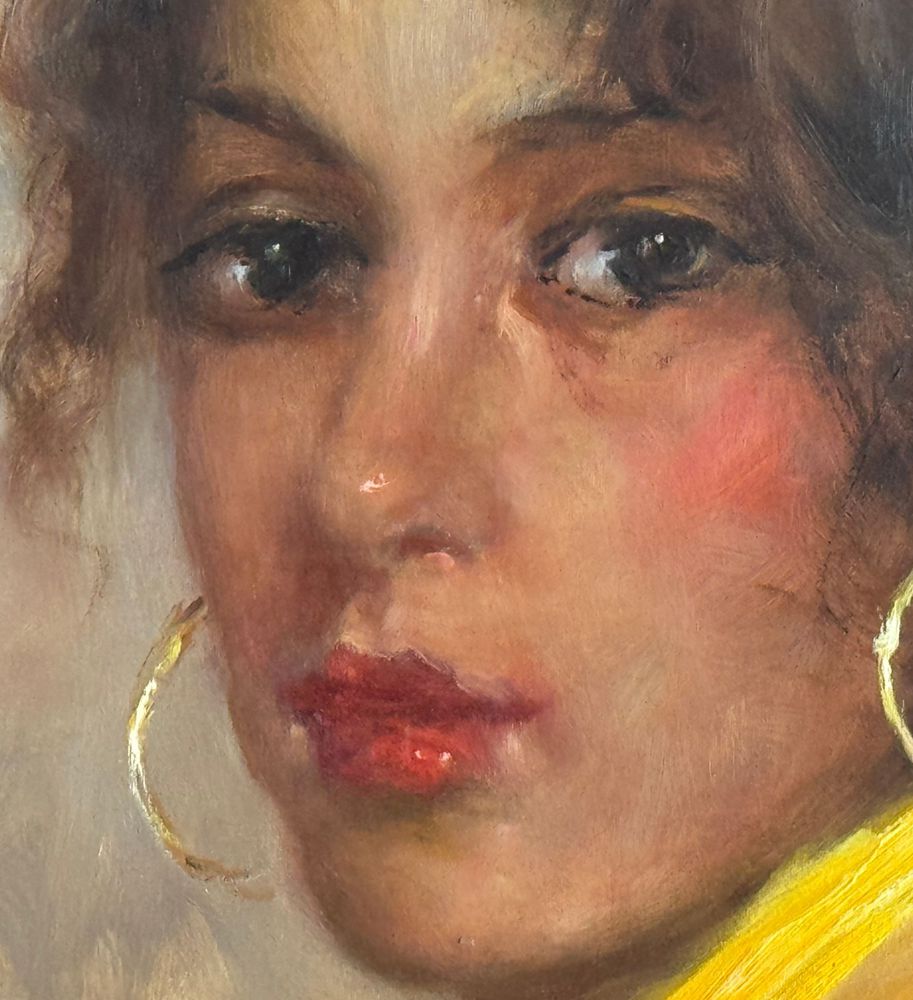 Dipinto olio su tela, periodo XX secolo scuola Italiana, raffigurante Ritratto di donna. Dimensioni compreso cornice: 59x69 cm. Dimensioni interno cornice: 50x60 cm. Reca firma in basso a sinistra da Giovanni Pane. Opera in buone condizioni.