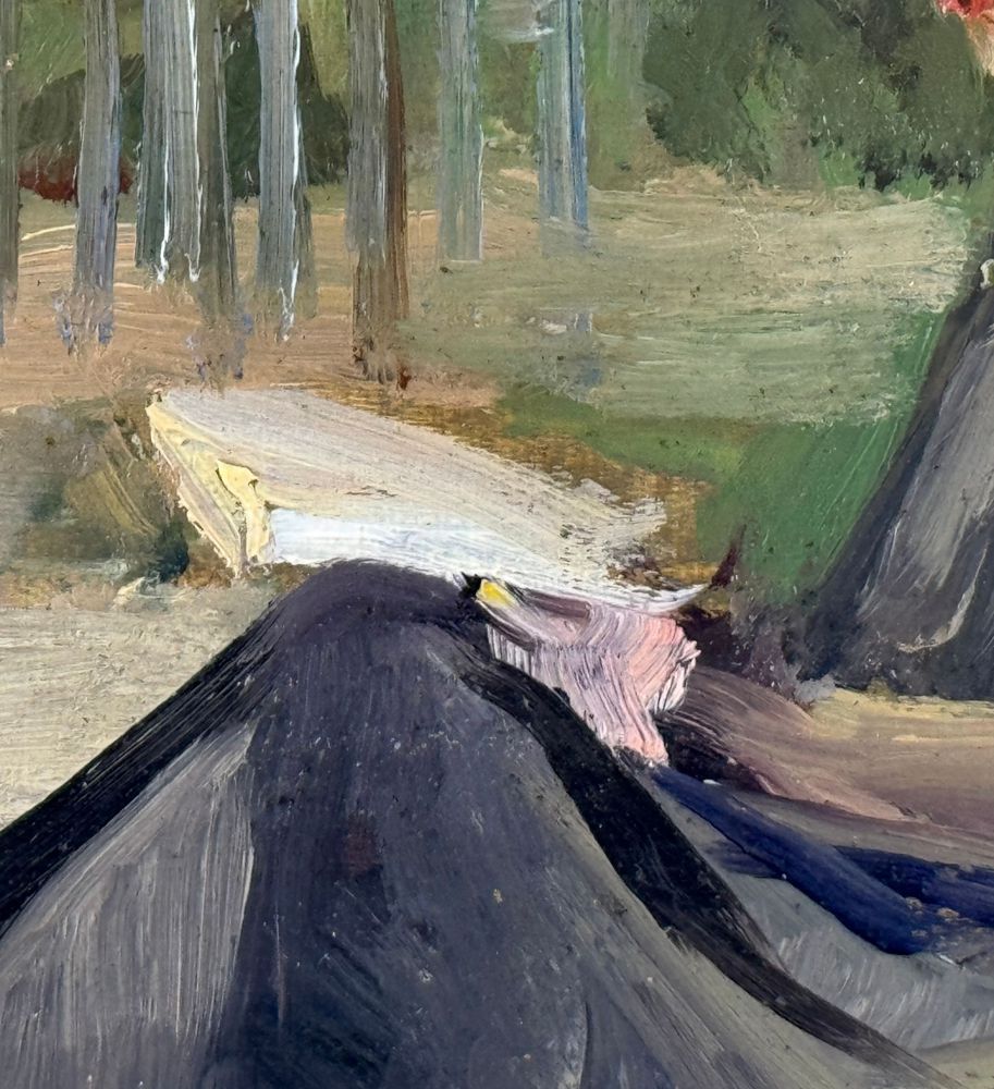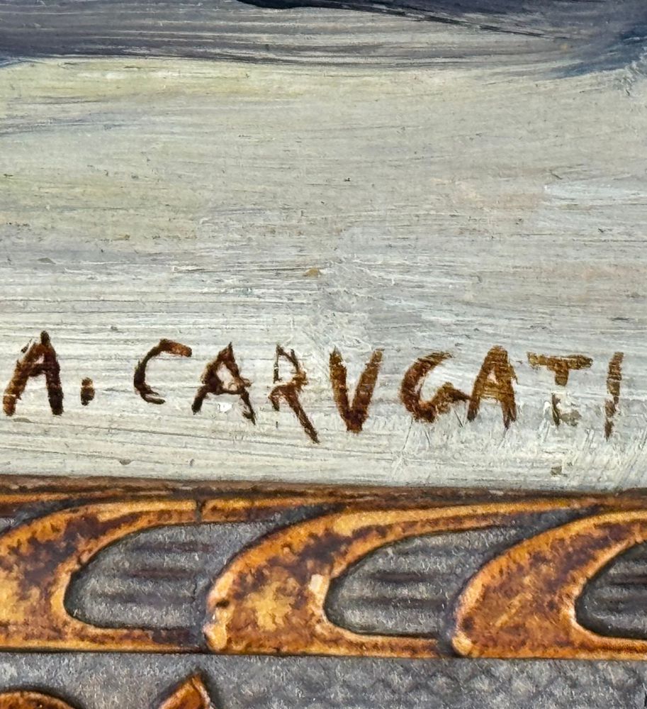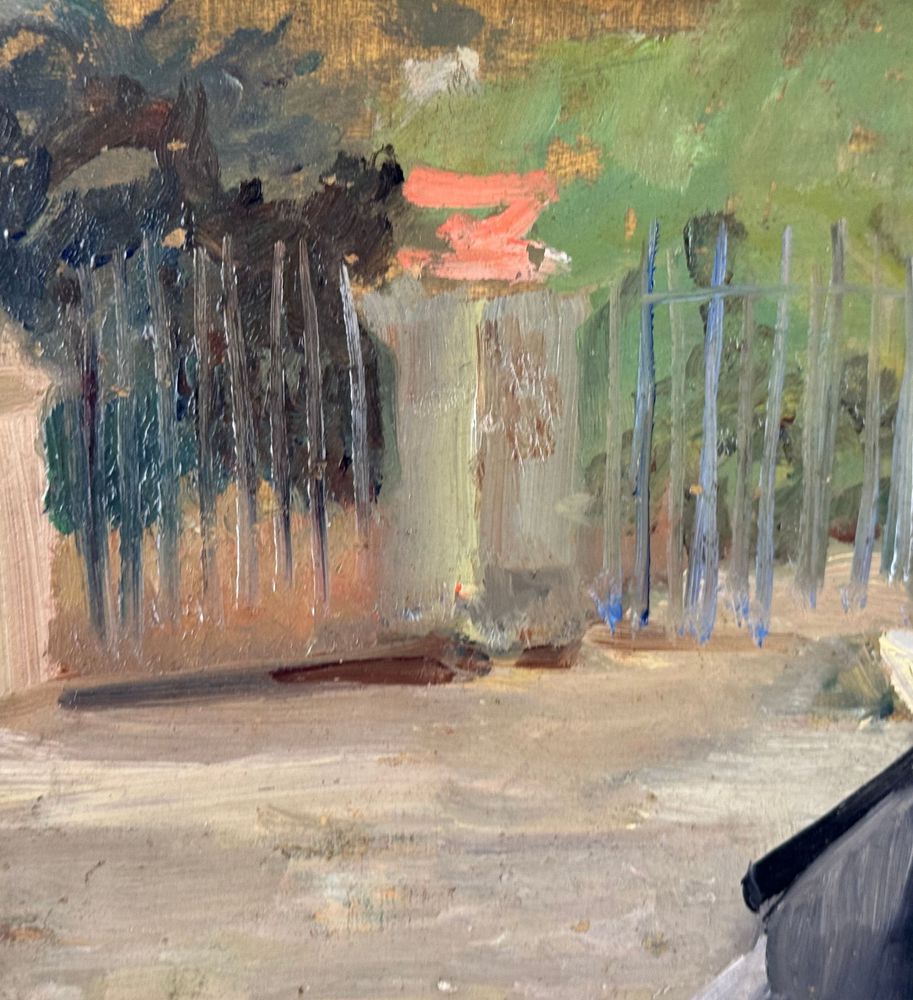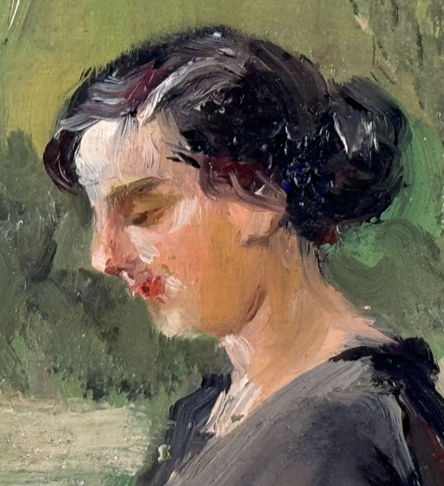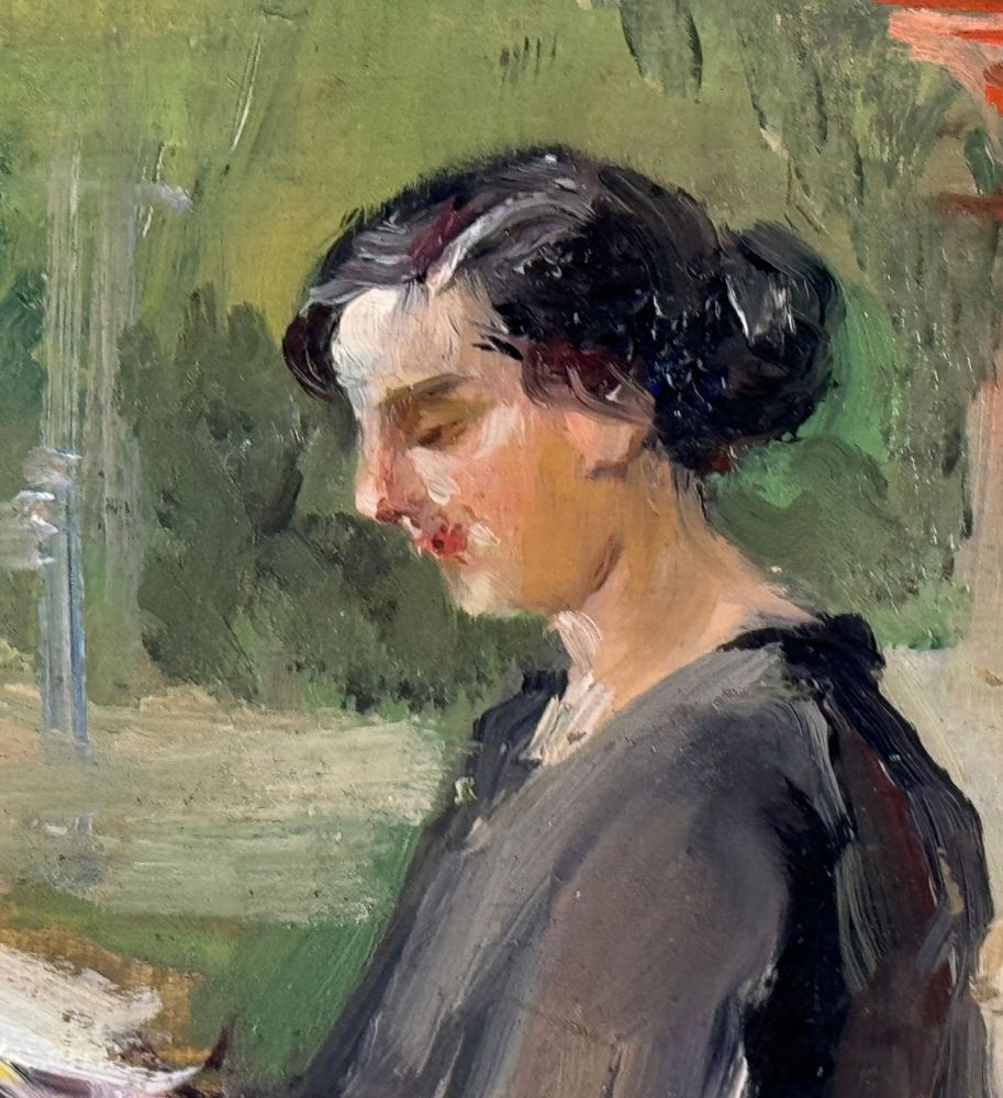 Dipinto olio su tavola, periodo XX secolo scuola Italiana, raffigurante Donna in lettura al parco. Dimensioni compreso cornice: 37x27 cm. Dimensioni interno cornice: 27x18 cm. Reca firma in basso a destra da Angela Carugati. Opera in buone condizioni.