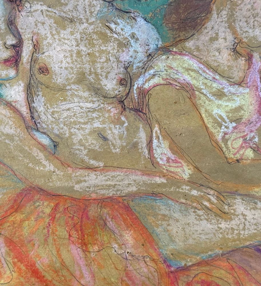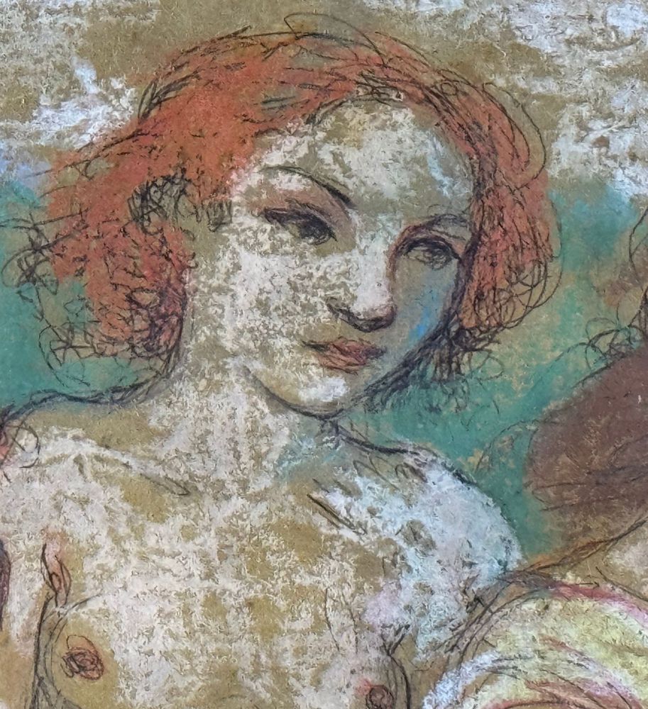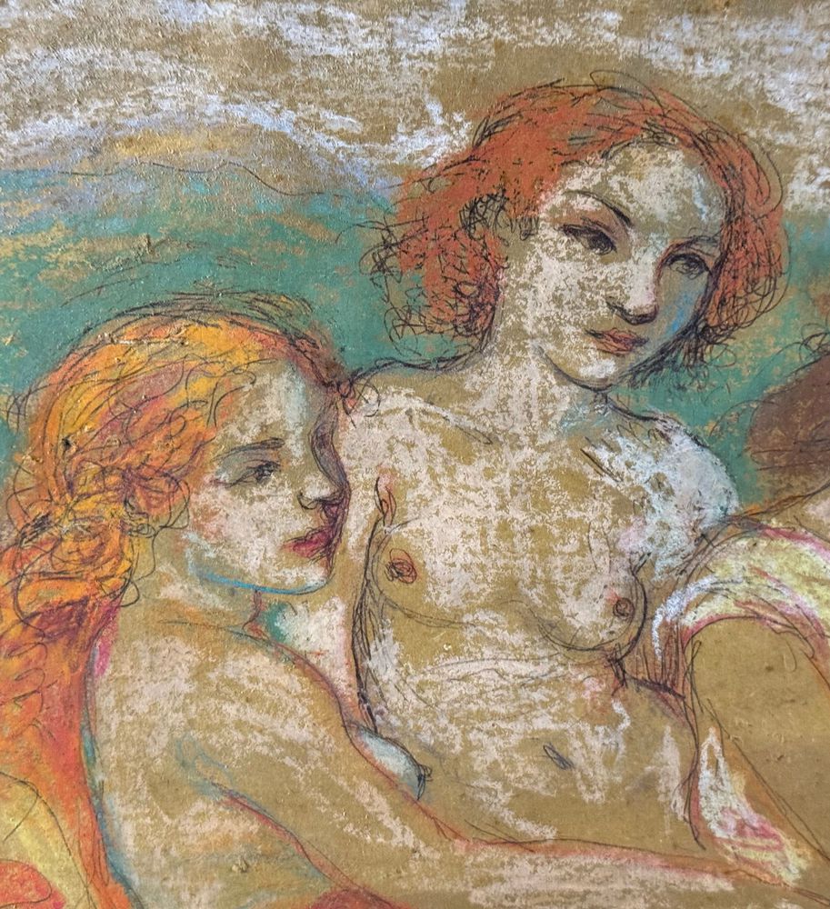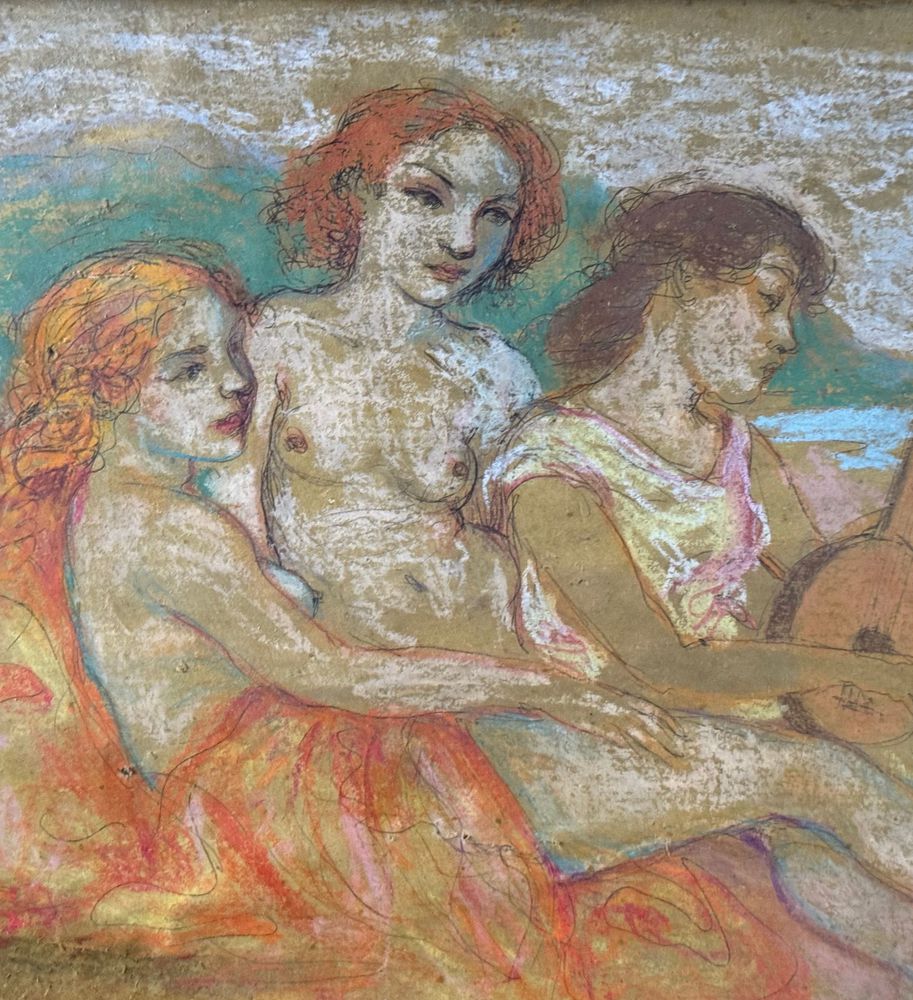 Tecnica mista su carta, periodo XX secolo scuola Europea, raffigurante Tre donne. Dimensioni compreso cornice: 44x38 cm. Dimensioni interno cornice: 29x23 cm. Da artista anonimo. Opera in buone condizioni con lievi segni di vissuto come da foto allegate.