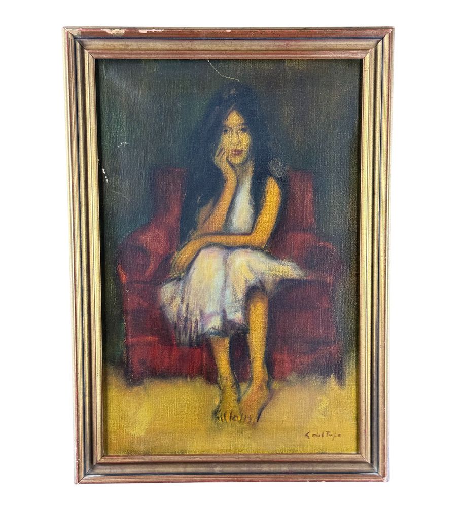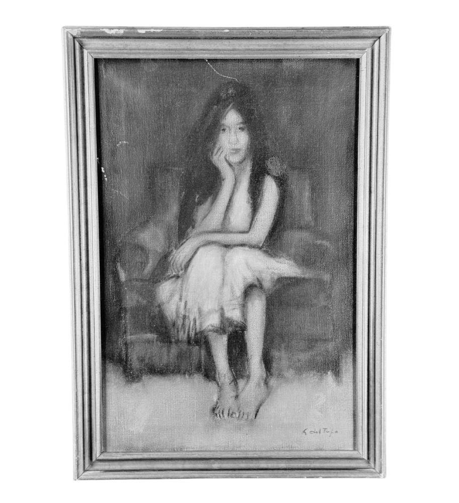 Dipinto olio su tela, periodo XX secolo scuola Italiana, raffigurante Ritratto di donna seduta. Dimensioni compreso cornice: 48x68 cm. Dimensioni interno cornice: 40x60 cm. Reca firma in basso a destra da artista non identificato. Opera in buone condizioni con lievi segni di vissuto come da foto allegate.