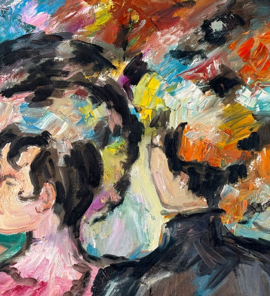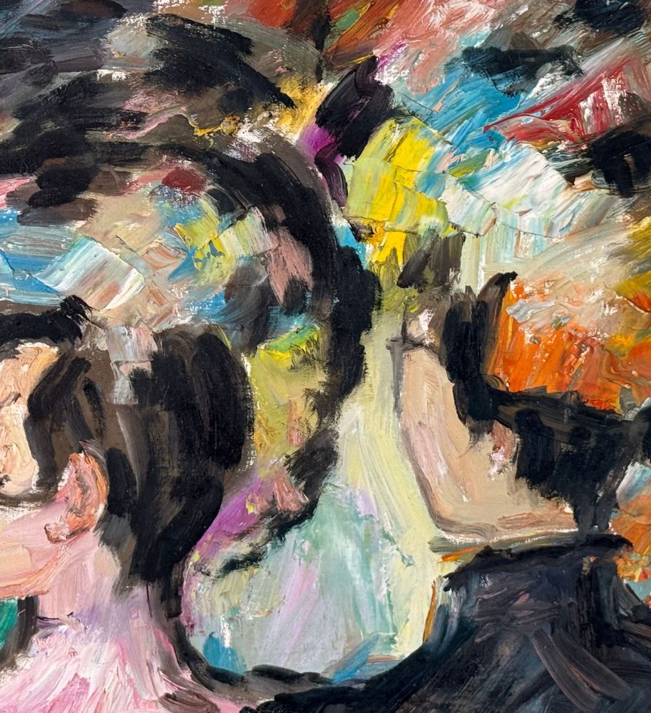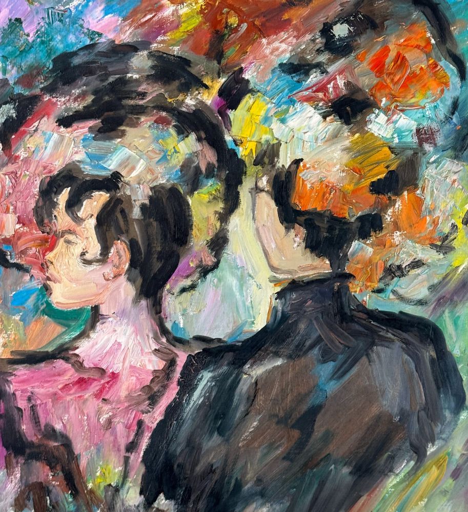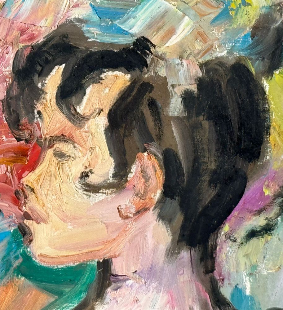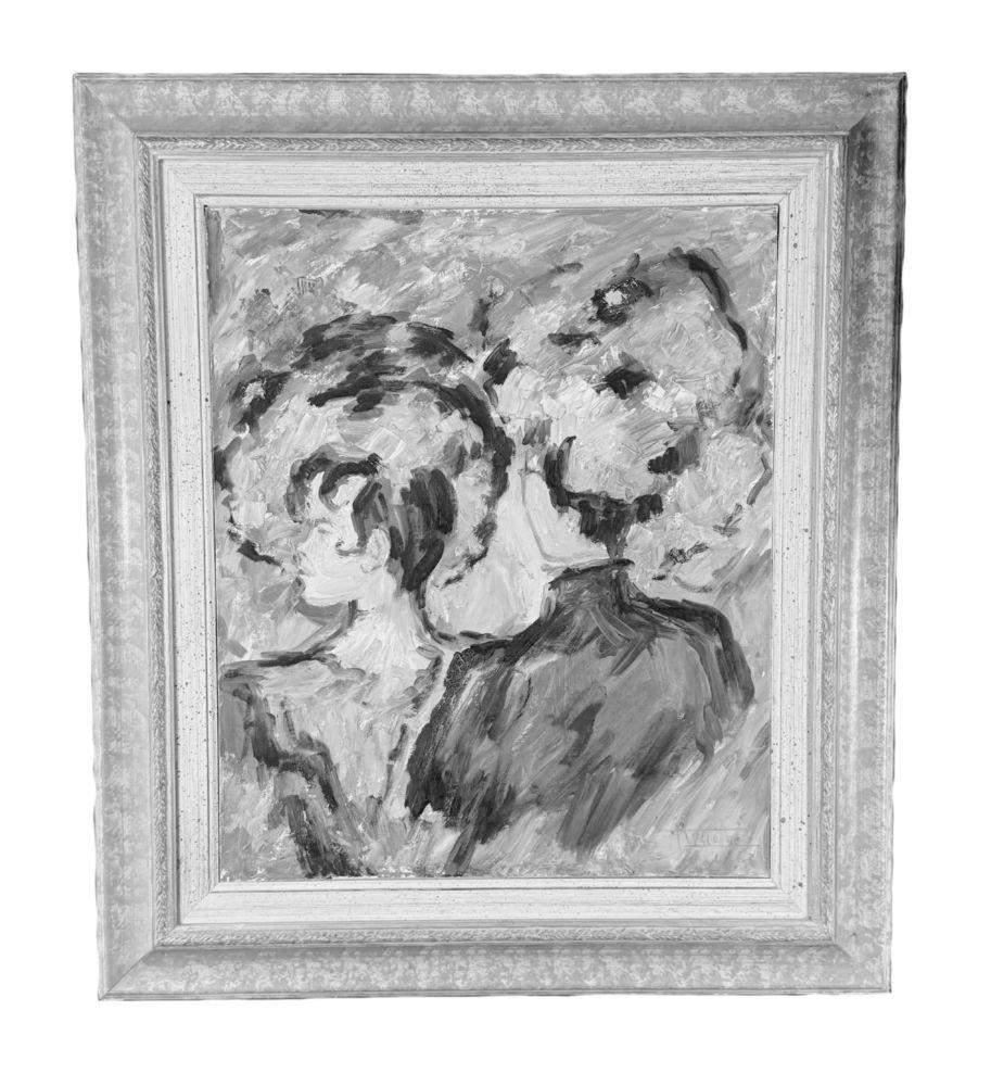 Dipinto olio su cartoncino, periodo XX secolo scuola Italiana, raffigurante Due donne. Dimensioni compreso cornice: 71x81 cm. Dimensioni interno cornice: 49x59 cm. Reca firma in basso a destra da artista non identificato. Opera in buone condizioni.
