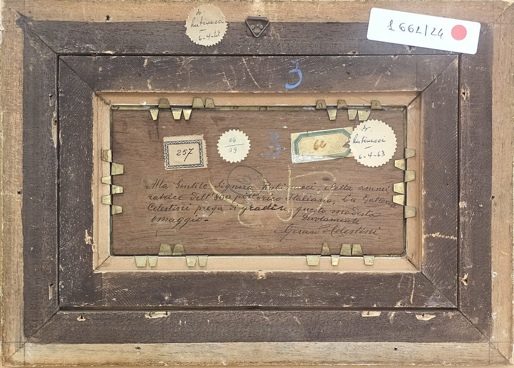 osservazioni: opera a tergo recante dedica del gallerista Gerard Celestini