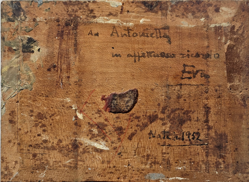 osservazioni: opera a tergo recante dedica della figlia dell'artista Natale 1952