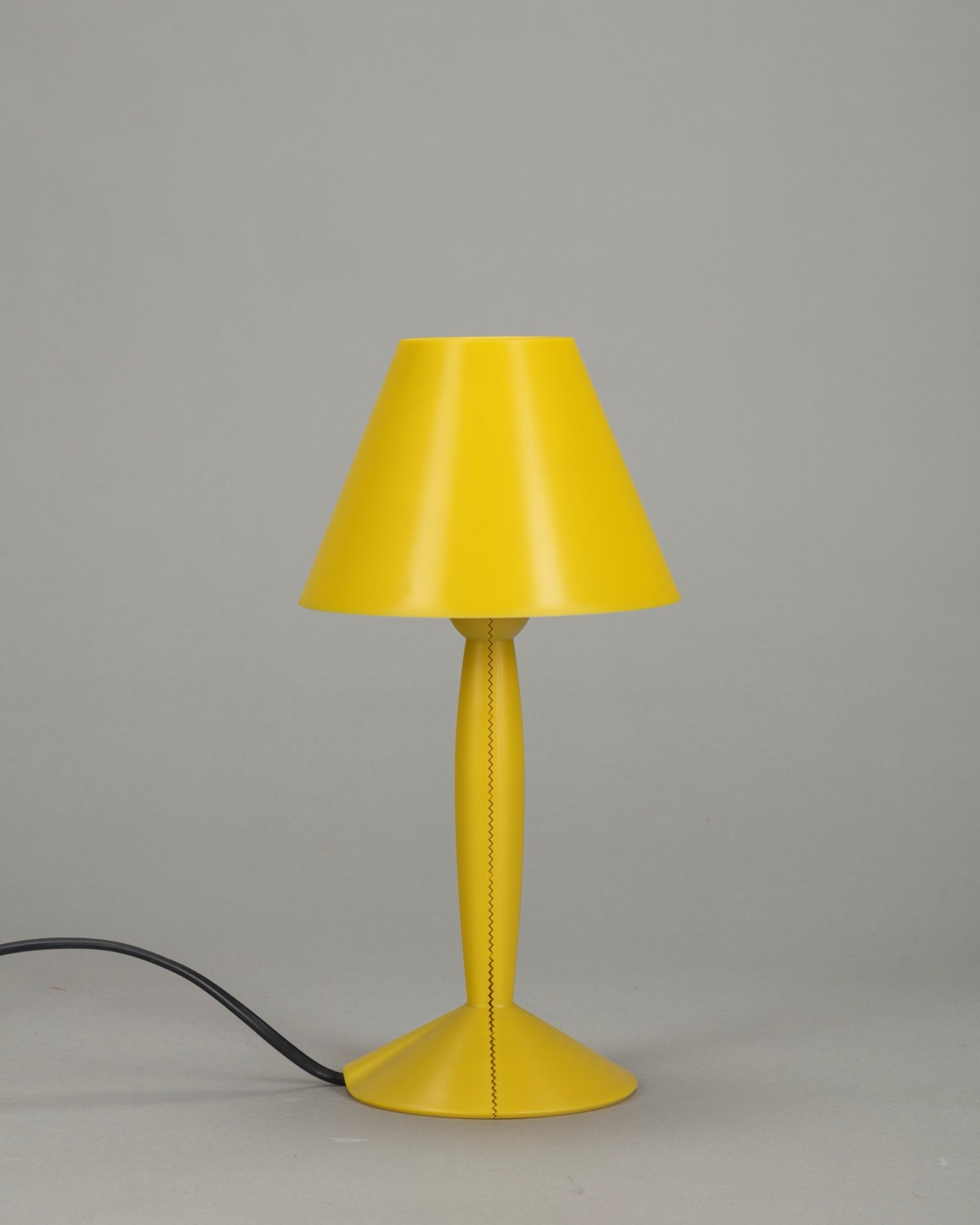 marchio e modello sotto la baselampada da tavolo, policarbonato giallo