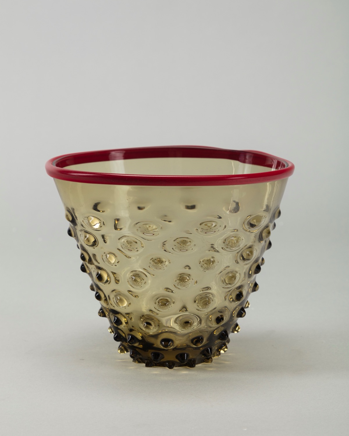 in vetro soffiato e bordo in pasta vitrea rossa