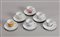 marchio della produzione sotto la basecomposto da sei tazzine e sei piattini, in porcellana smaltata e decorata