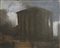 PIGNATELLI LUCA (n. 1962) TEMPIO DI VESTA . 2004. olio su telone di copertura di vagone. Cm 25,80 x 20,80. sul retro: firma, data e titolo