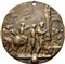 Placchetta tonda in bronzo con patina marrone chiaro e tracce di doratura; mm 54,6; gr 36,4.