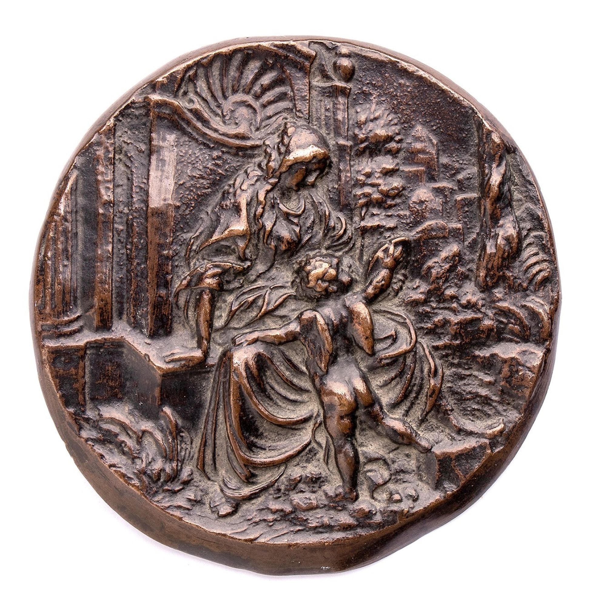 Placchetta tonda concava in bronzo con patina marrone; mm 76,1; gr 65,5.
