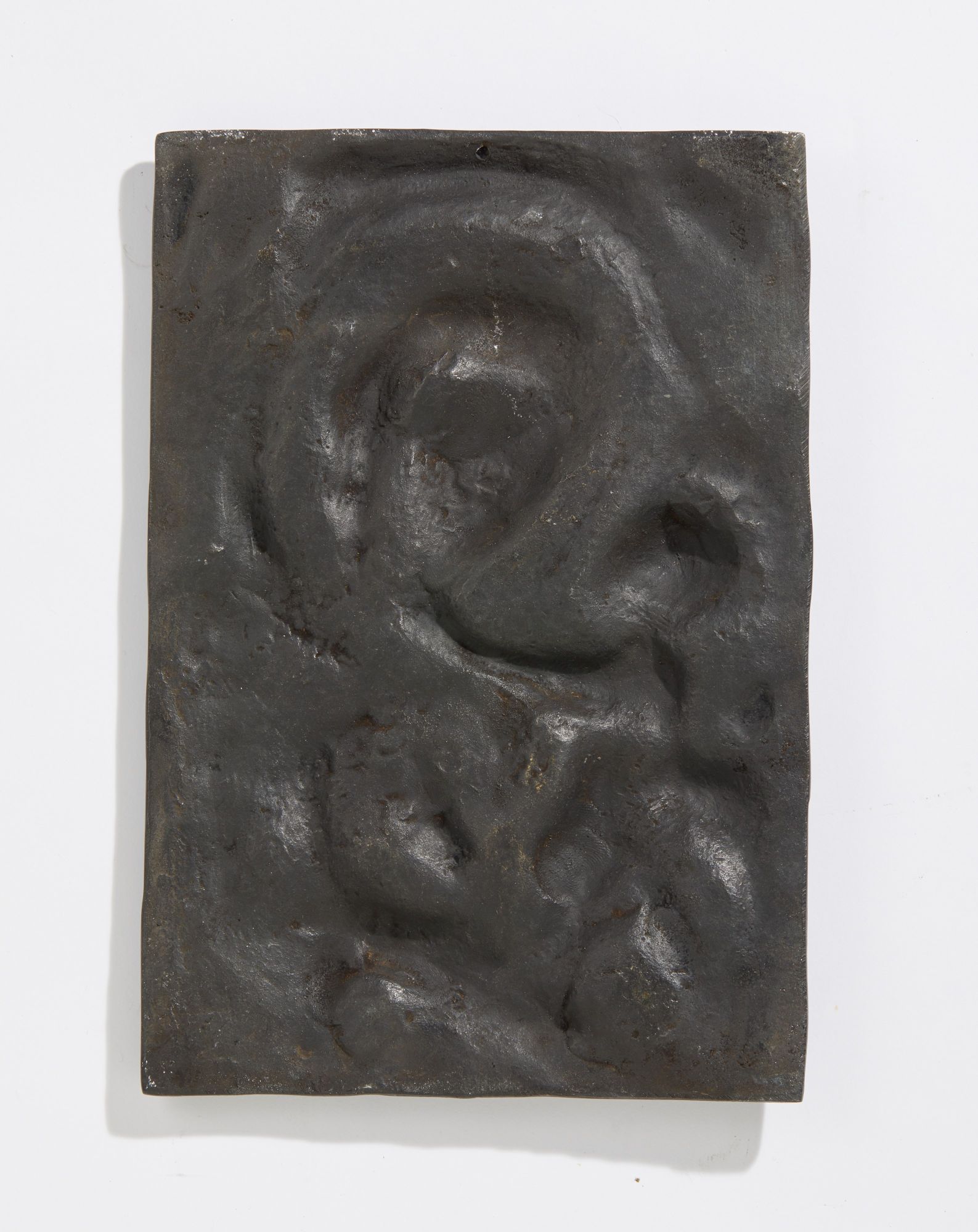 Placchetta rettangolare in bronzo con patina marrone scuro; mm 220 x 145.