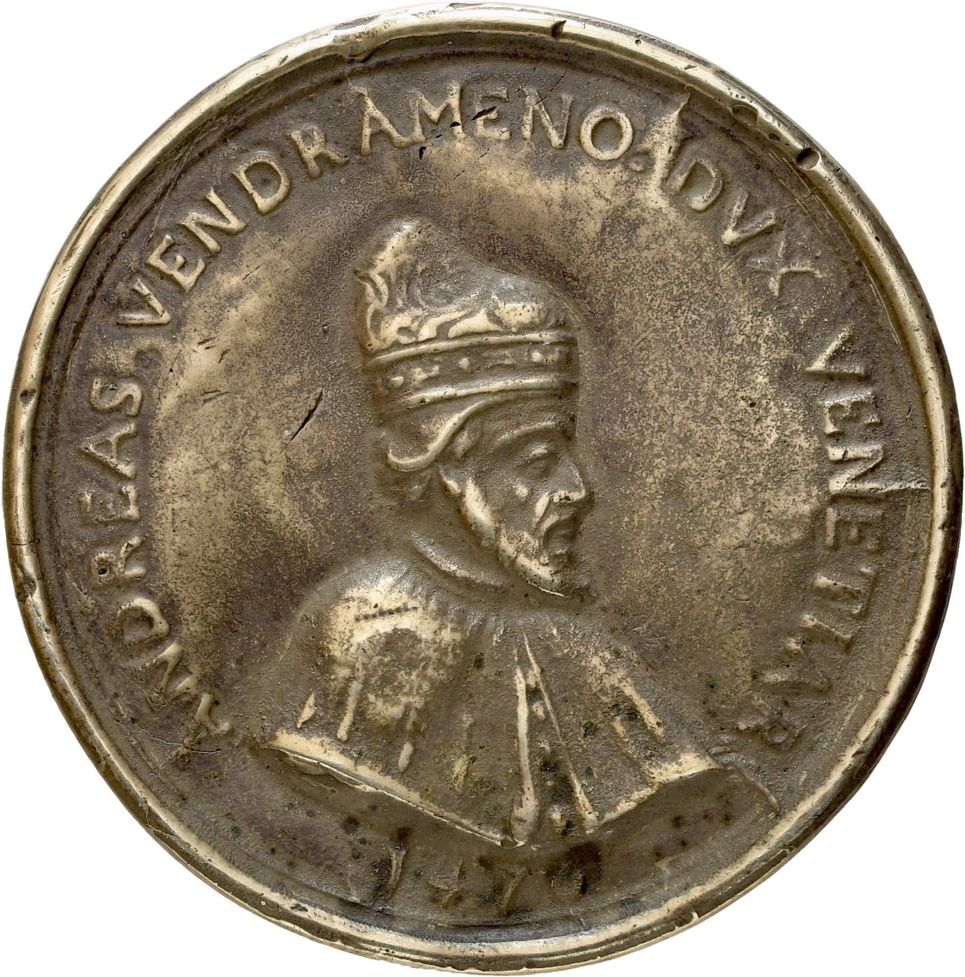D\ ANDREAS VENDRAMENO DVX VENETIAR sotto il busto 1476. Busto rivolto a destra con veste e corno dogali