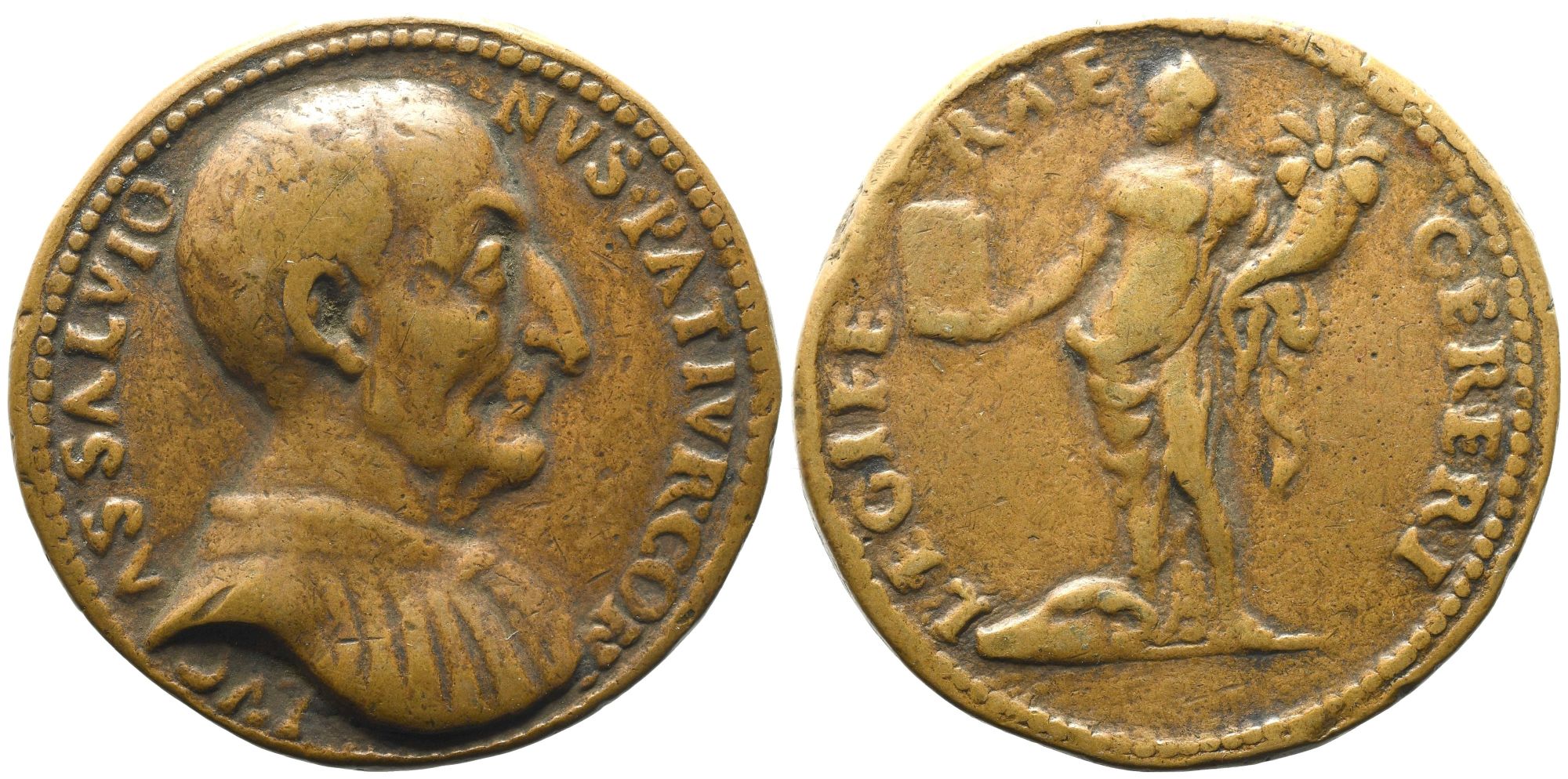 Medaglia in bronzo con patina marrone chiaro; mm 36.     Opus Giovanni Cavino da Padova.