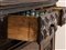 Altezza x lunghezza x profondità: 129 x 152 x 57 cm in legno di noce con intagli geometrici, sul fronte cassetti, sportelli e fianchi; piedi a forma di drago