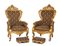 Altezza x larghezza x profondità: 125 x 73 x 73 cm, seduta 50 cm; 13 x 40 x 32 cm importanti poltrone intagliate e dorate a foglia d'oro.