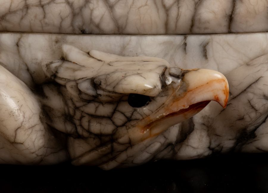 Posta su un basamento ovale gradinato scolpito sul fronte con la testa di un aquila con ali spiegate.