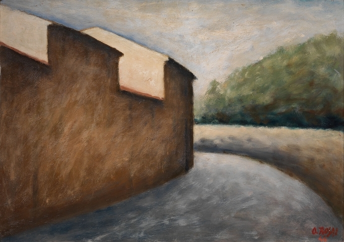 Ottone Rosai (Firenze 1895 - Ivrea 1957) CASE AL GIRONE olio su cartone pressato, cm 50x70 firmato e datato sul retro: sul supporto etichetta e timbri Galleria d’arte Santacroce, Firenze; sul telaio timbro Umberto Michaud, Firenze eseguito nel 1946 Provenienza Umberto Michaud, Firenze Galleria Santacroce, Firenze Ivi acquisito dall’attuale proprietario Pubblicazioni Bollettino d’informazioni della Galleria Santacroce, Firenze dicembre 1961, p. 12 Esposizioni Galleria Santacroce, Firenze Galleria La Chiocciola, Padova