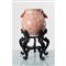 Vaso con manici a teste di cervo in porcellana bianca con decori a motivo naturalistico, base in legno.