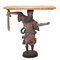 Piccola consolle/scultura in legno policromo raffigurante "Guerriero", piano in legno dipinto a finto marmo.