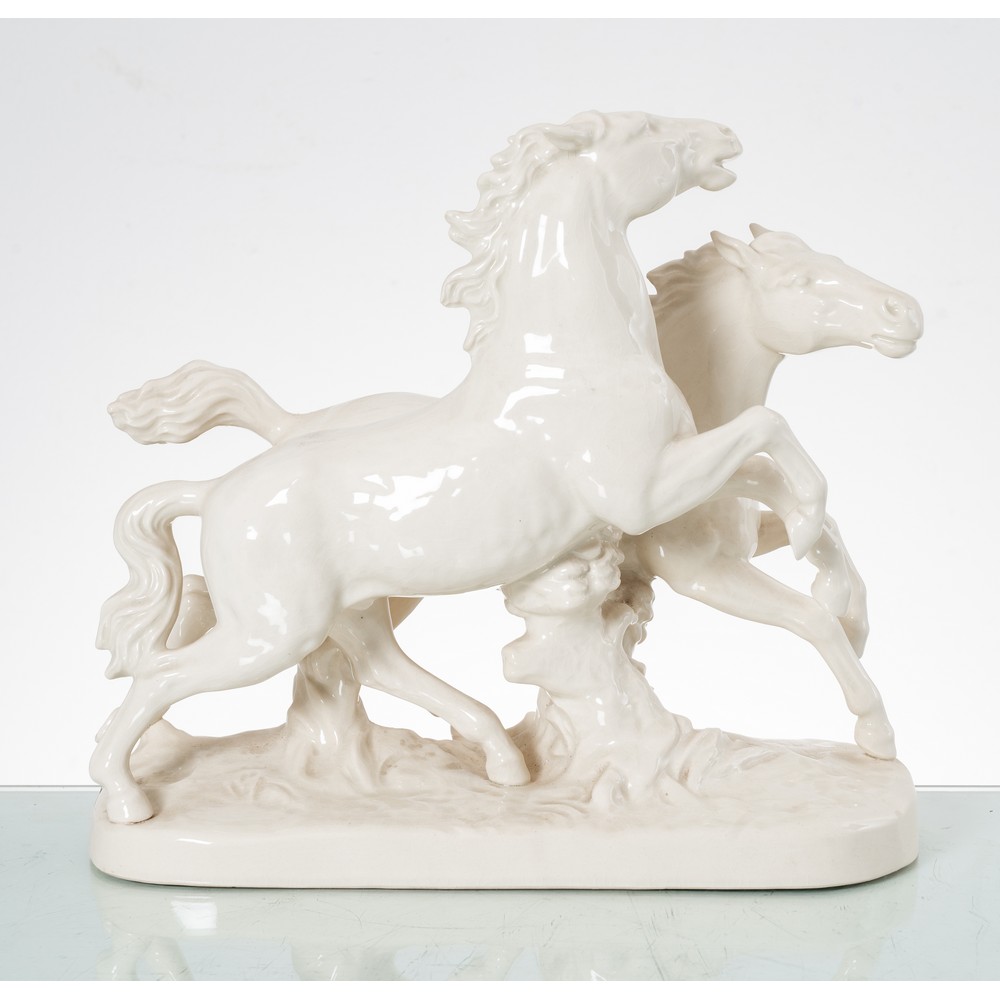 GRUPPO in ceramica smaltata raffigurante "Cavalli".