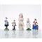Quattro piccole sculture in porcellana policroma raffiguranti "Personaggi vari" e piccola scultura in biscuit policromo raffigurante "Fanciullo in lettura" (mancanze).