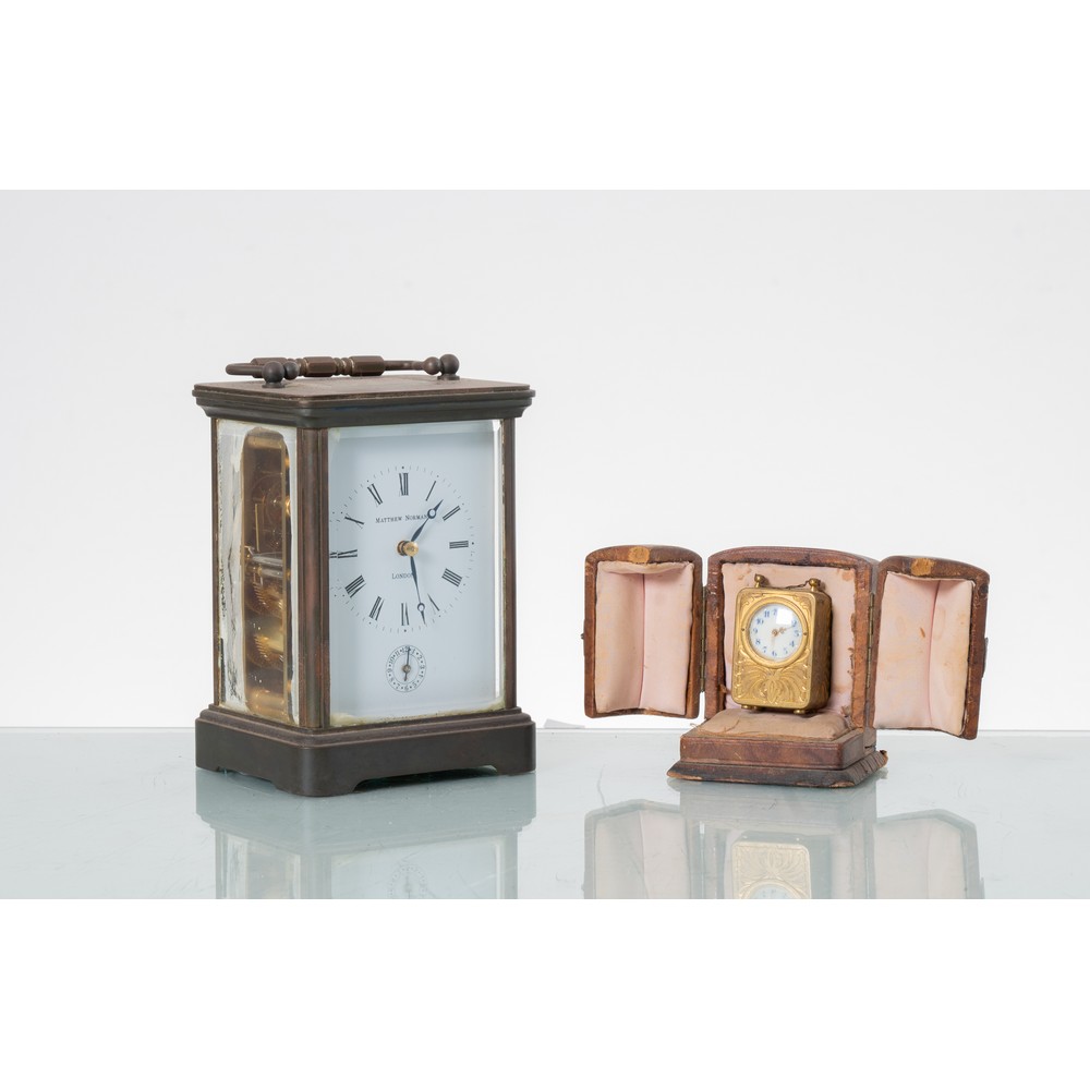 Cappuccina in metallo con quadrante smaltato e numeri romani; cappuccina in miniatura in metallo dorato con quadrante smaltato e numeri arabi.