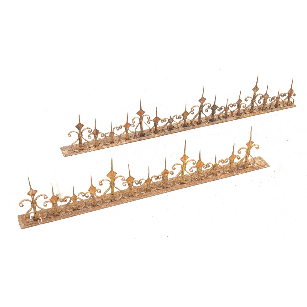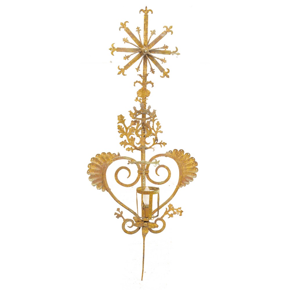 Portacero in ferro dorato battuto e due portaceri in ferro.