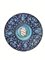 Il piatto o tondino, integralmente ricoperto da smalto “berettino”, ha un profondo cavetto e una larga tesa appena obliqua. Il decoro mostra uno stemma al centro del cavetto racchiuso in un medaglione incorniciato da una fascia decorata in bianco su fondo azzurrato.