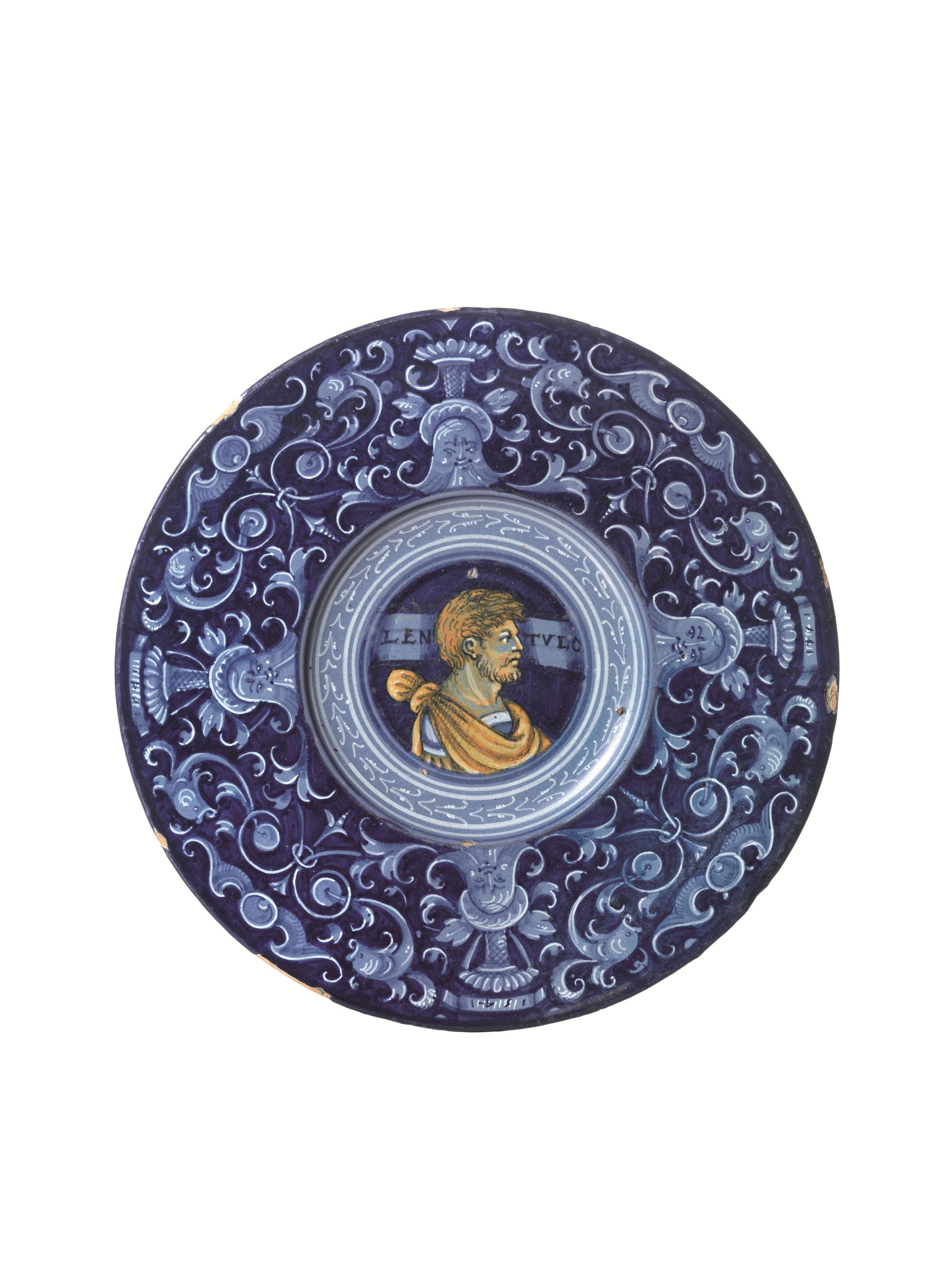 Carmen Ravanelli Guidotti nel Thesaurus del 1998 nell’analizzare questa tipologia faentina cita un piatto con “Lentulo”, conservato in una raccolta privata parigina: il probabile riferimento al nostro esemplare è confermato dalla comune datazione (1541).